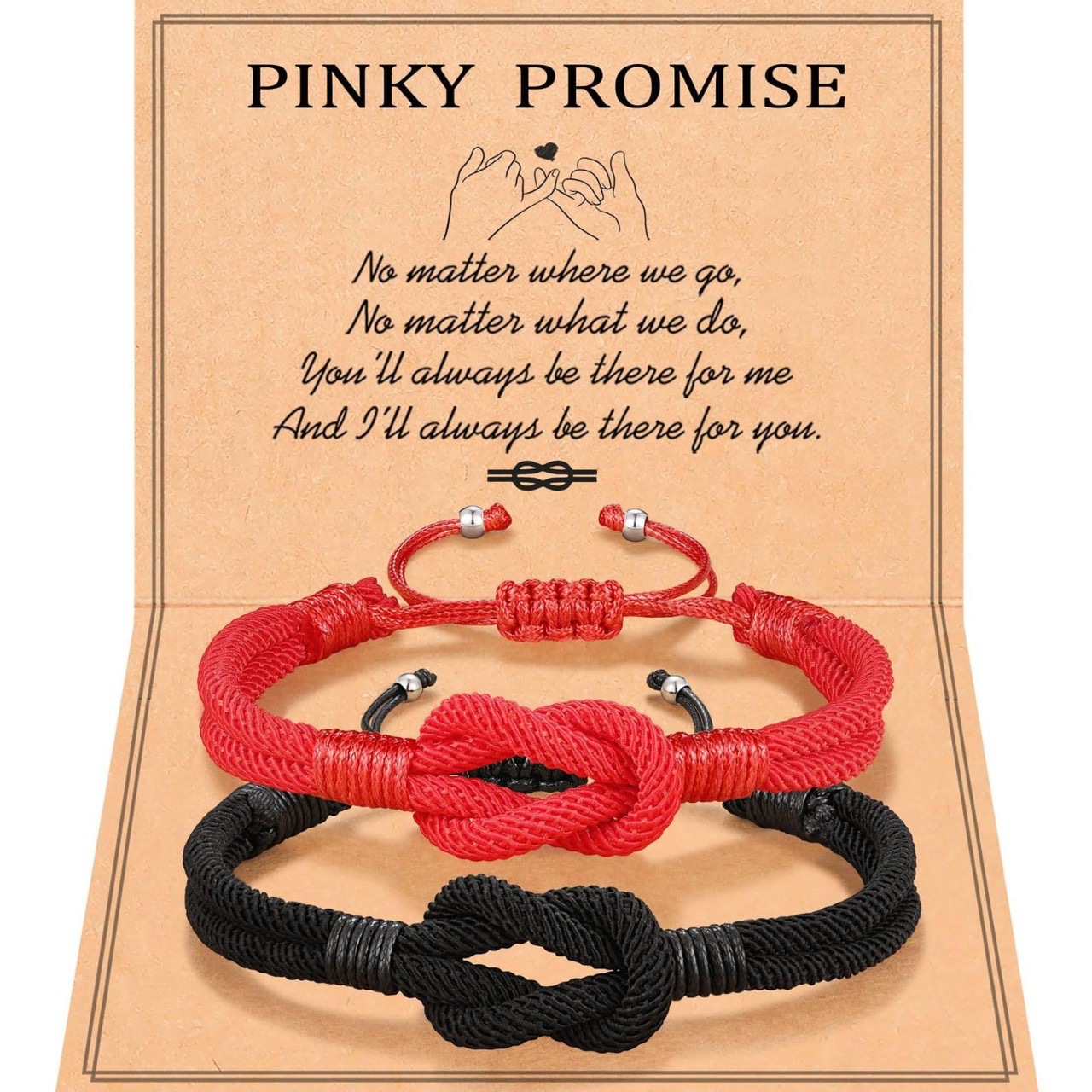 pinky promise card + black and red milan rope bracelet