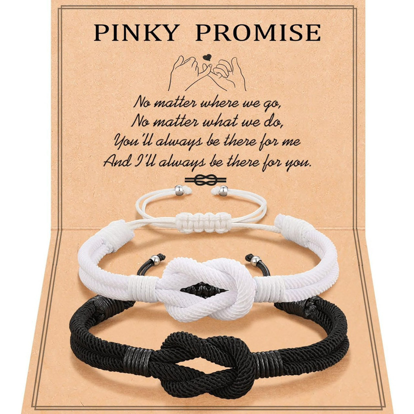 pinky promise card + black and white milan rope bracelet