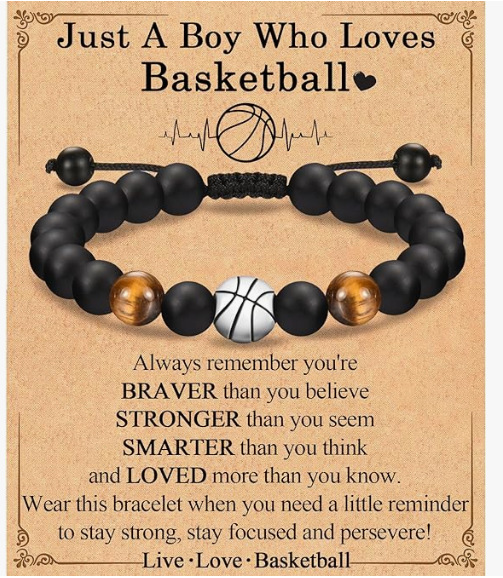 tiger eye + basketball bracelet + just card
