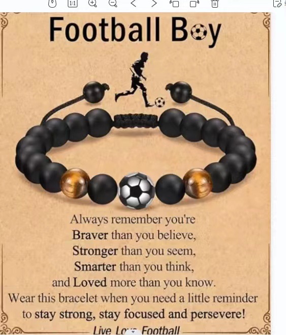 tiger eye + football bracelet + soccer card