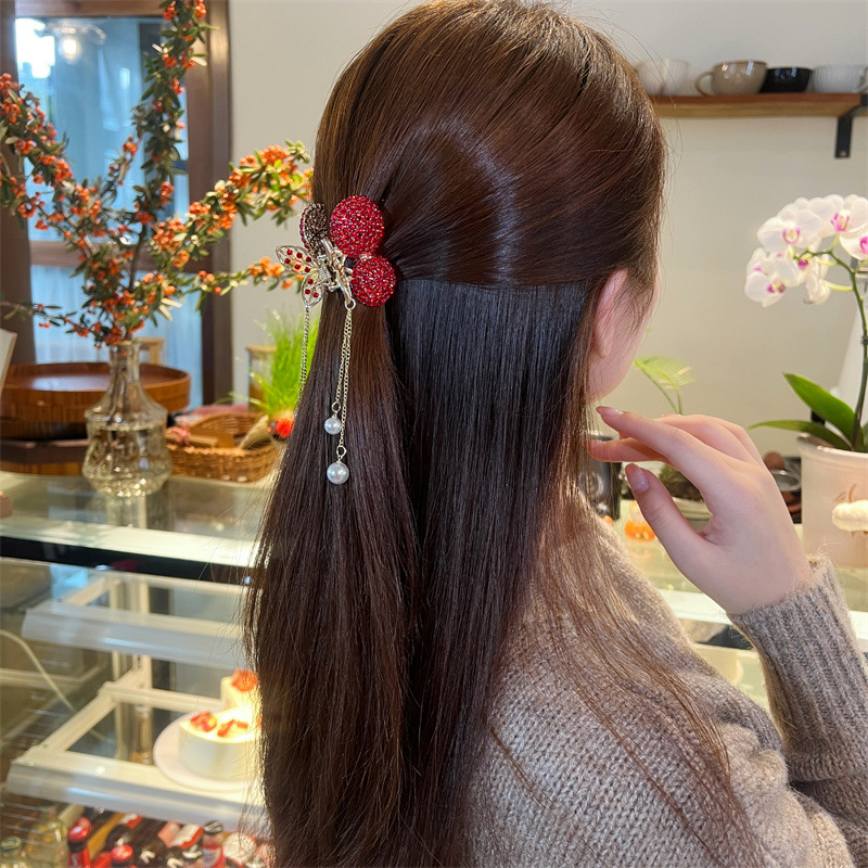 full diamond red cherry tassel grip