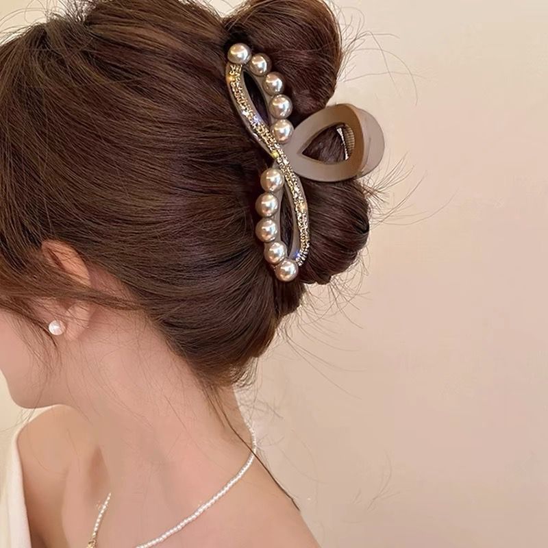 3# large champagne rhinestone bow claw clip 11cm