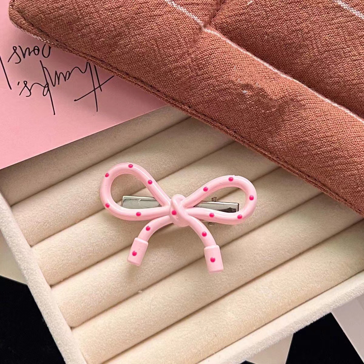5249 polka dot hair clip-long light pink