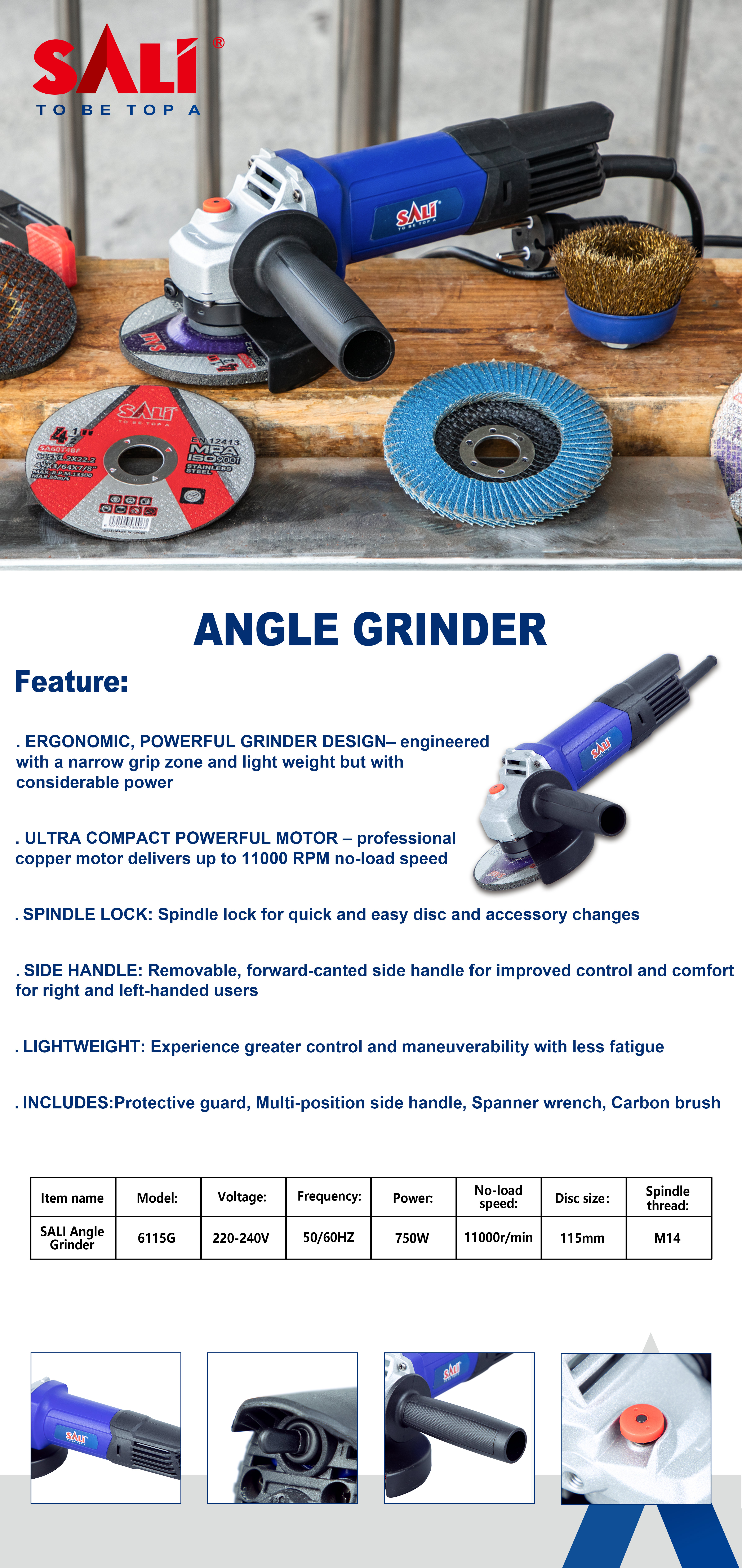 Sali Angle Grinder 4.5-Inch 115mm Polishing Machine Cutting Artifact 中文版