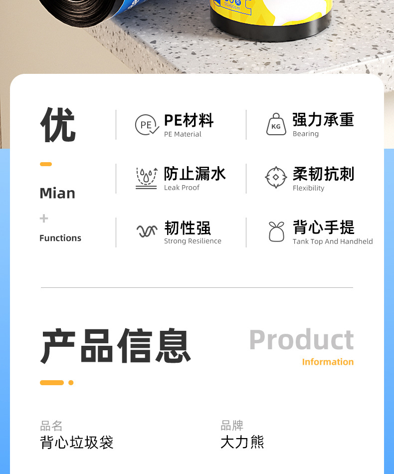 100 drawstring tear-free garbage bags [extra thick 5.6 g/piece] 45 * 50cm