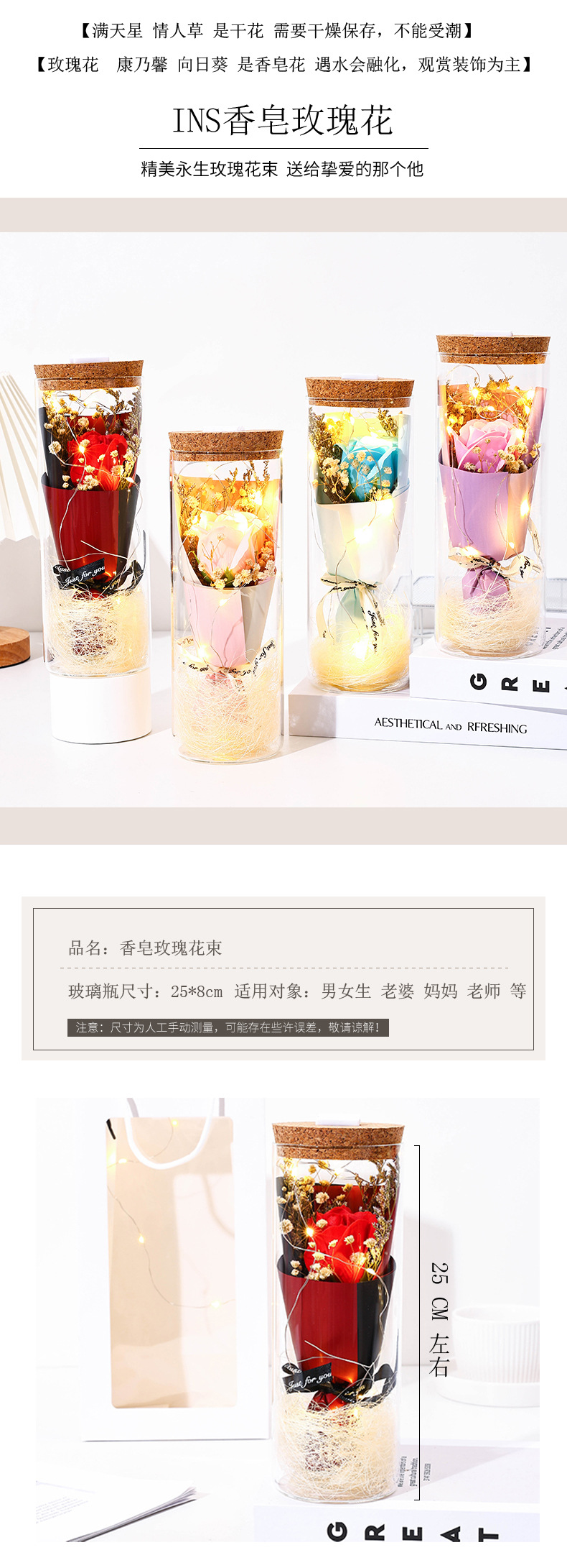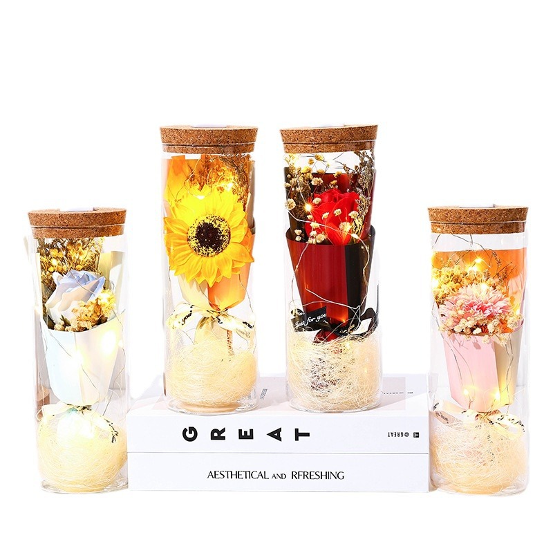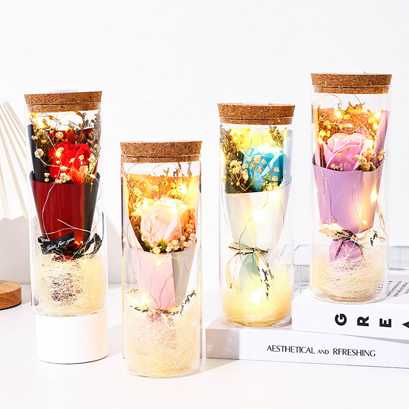 glass flower [red rose] + light + gift bag