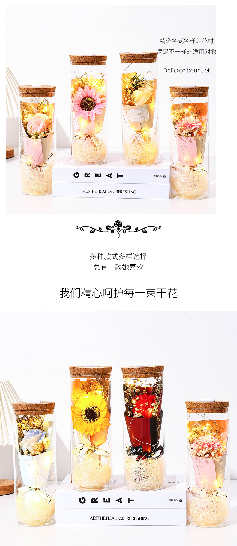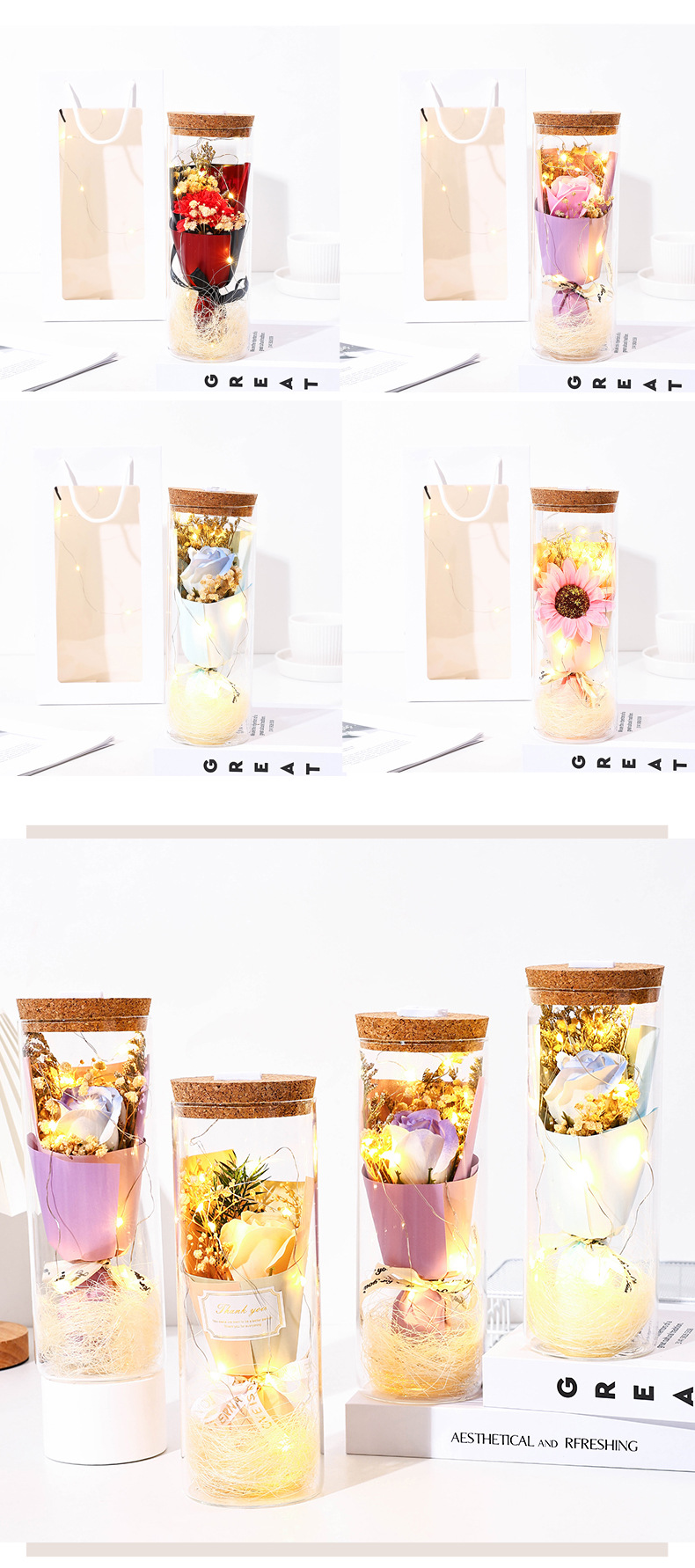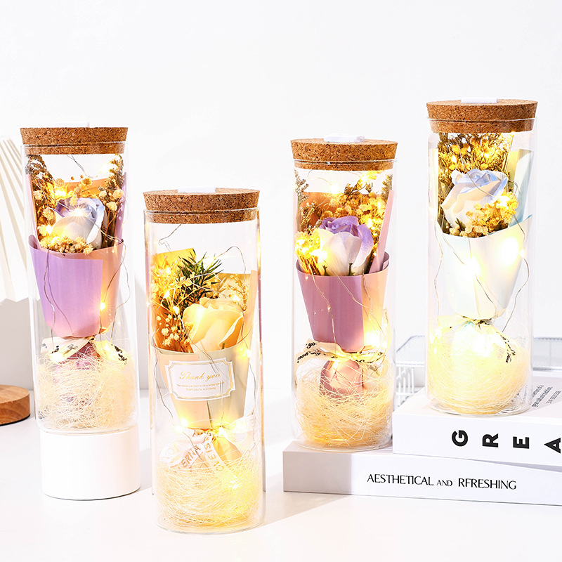 glass flower [champagne rose] + light + gift bag