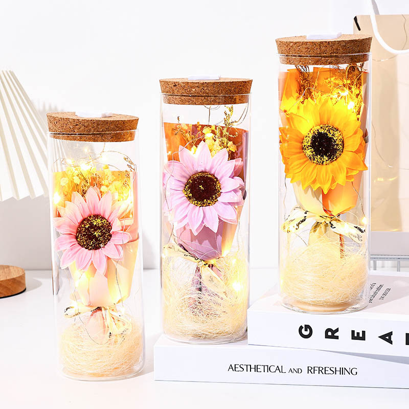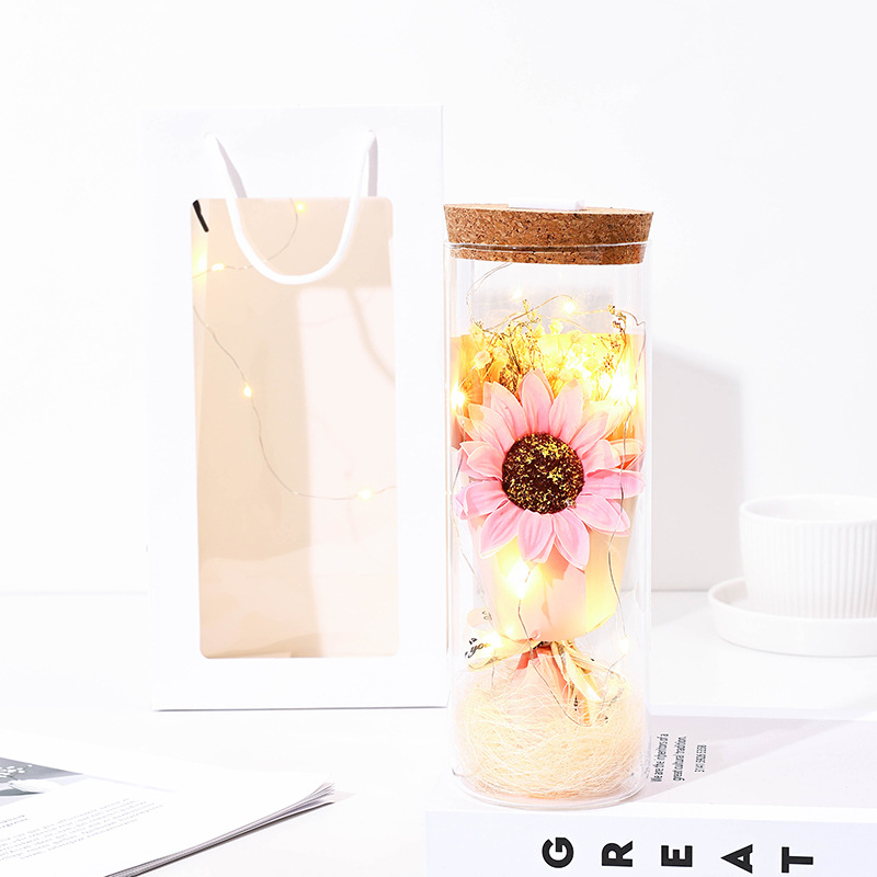 glass flower [pink sunflower] + lamp + gift bag
