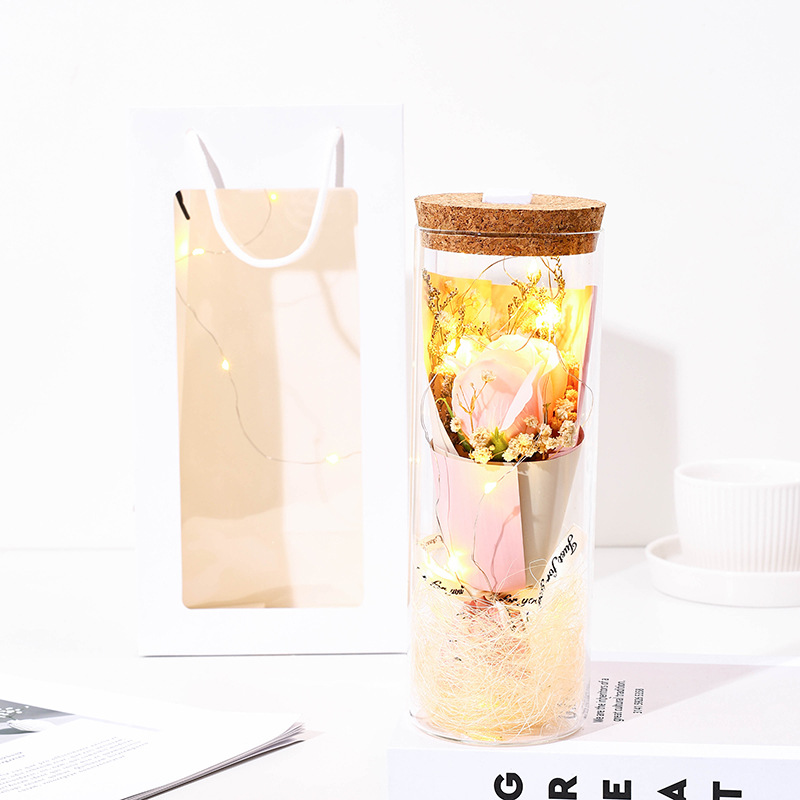 glass flower [pink rose] + light + gift bag