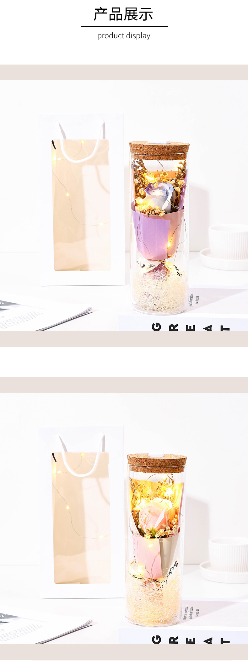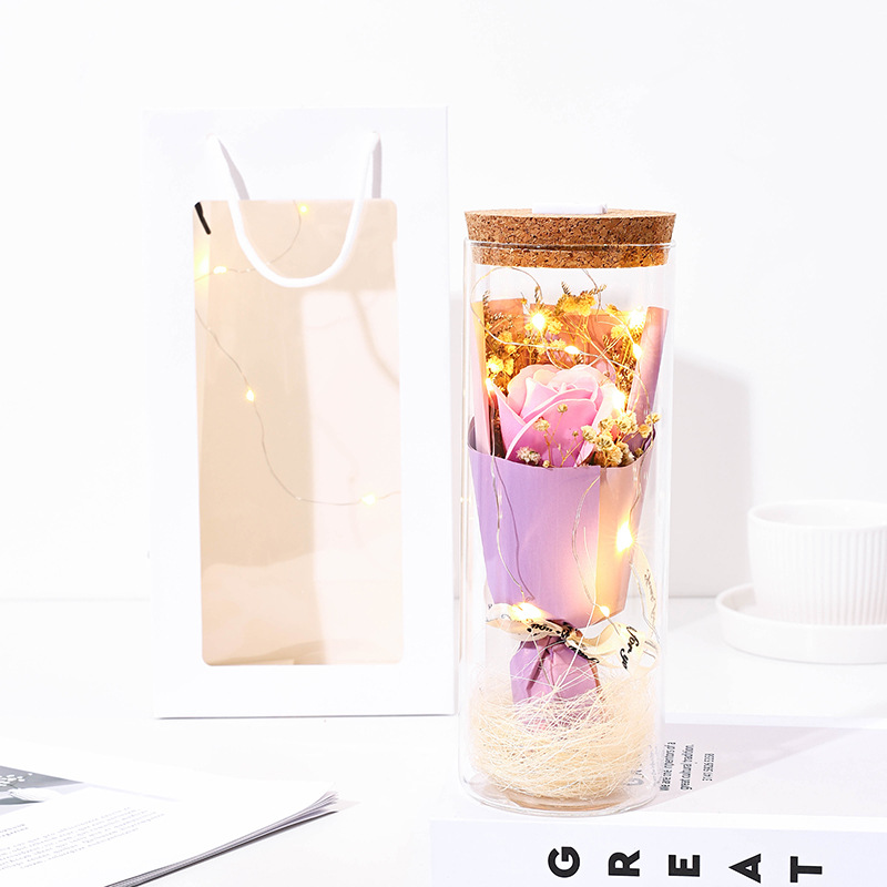glass flower [purple rose] + light + gift bag