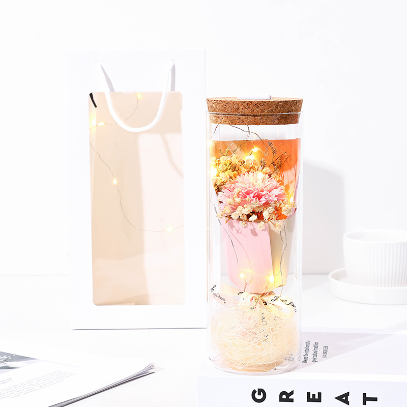 glass flower [pink carnation] + lamp + gift bag