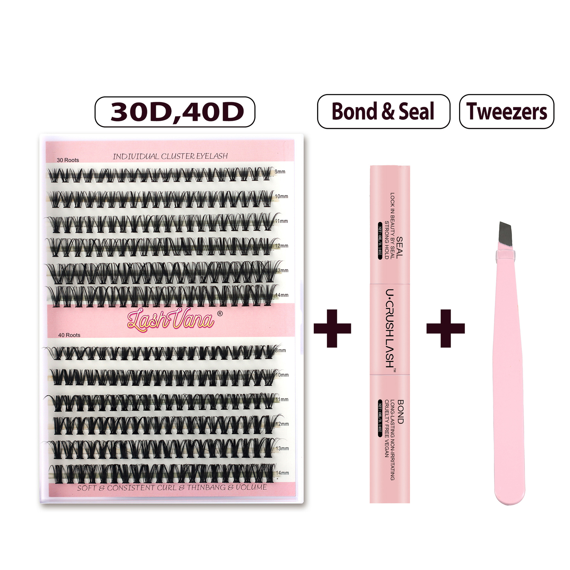 (30d + 40d)+ double-headed glue + remover + pink tweezers