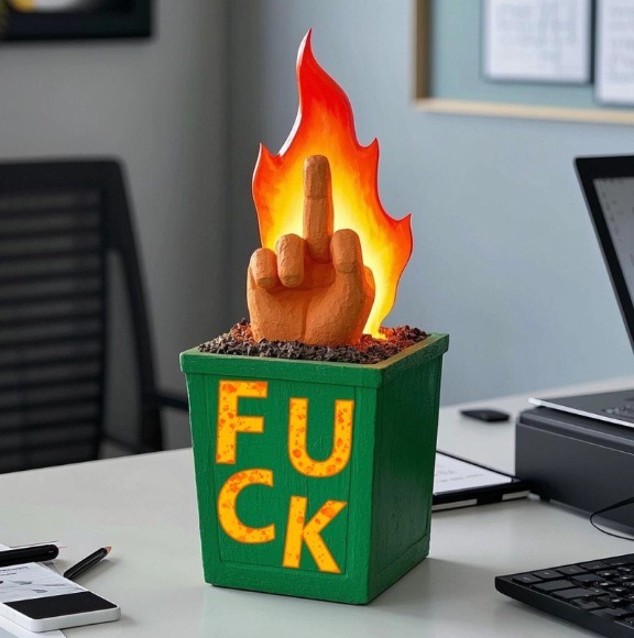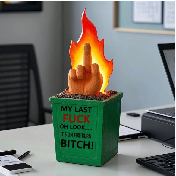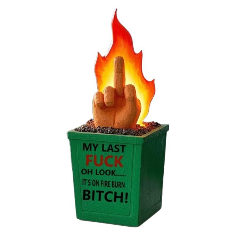 burning middle finger trash can-a