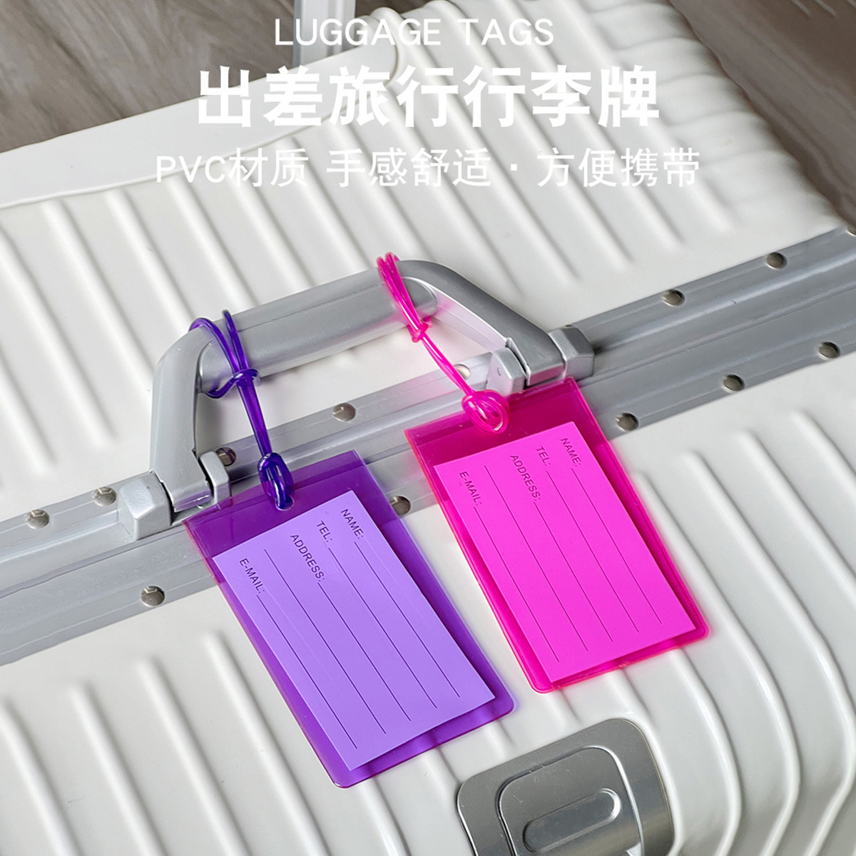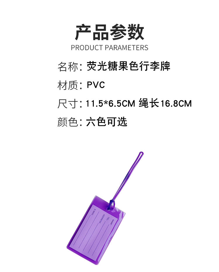 purple square luggage tag