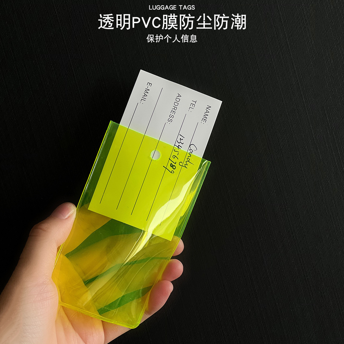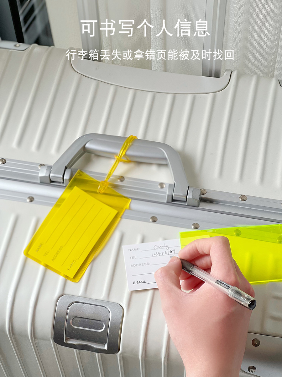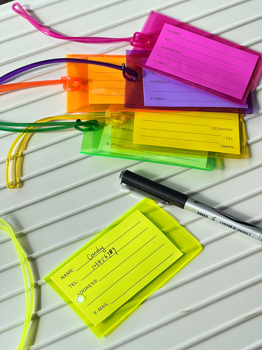 fluorescent green square luggage tag