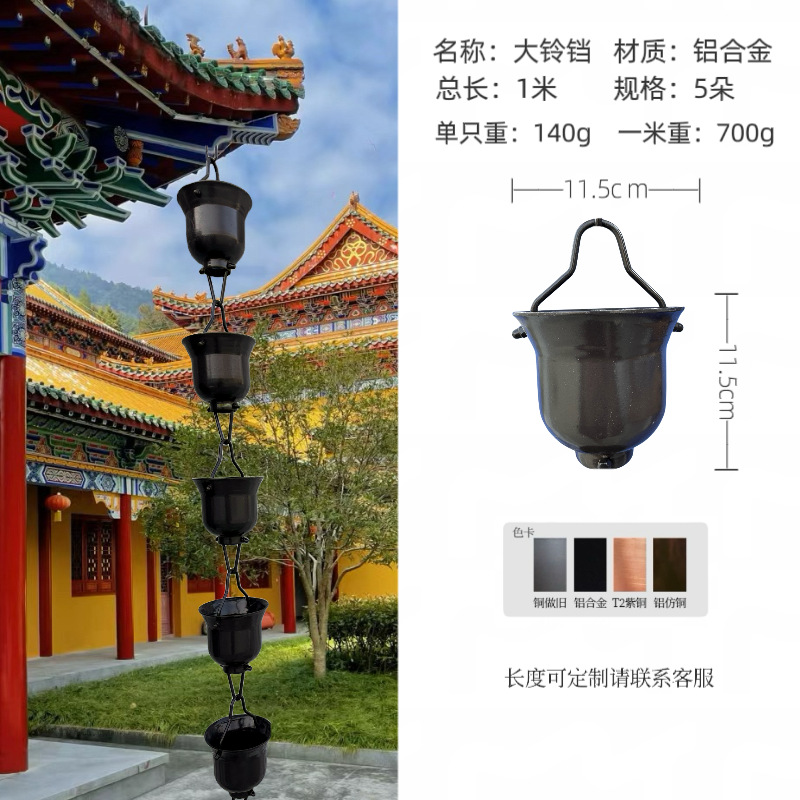 big bell rain chain aluminum alloy dark brown one meter 5 flowers
