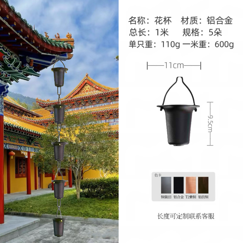 flower cup rain chain aluminum alloy dark brown 1 m 5 flowers