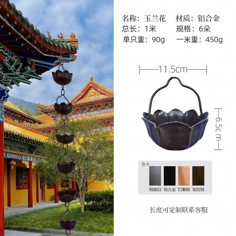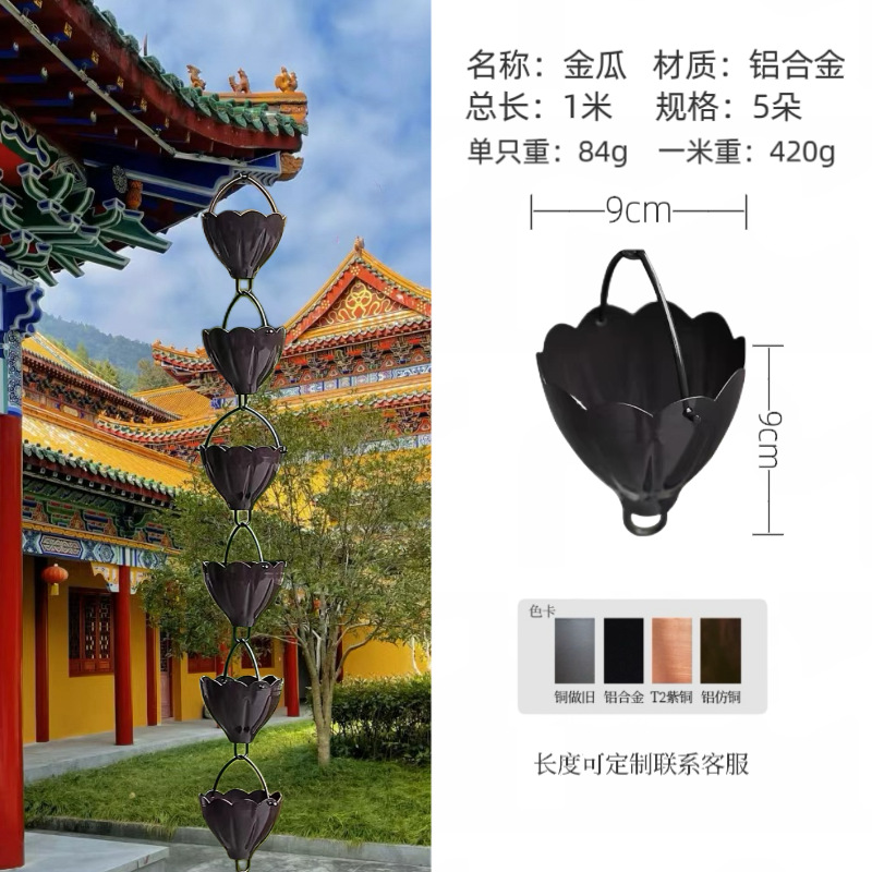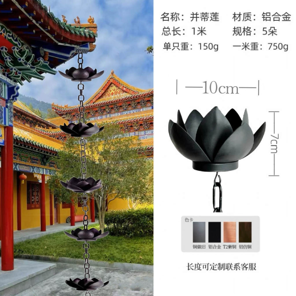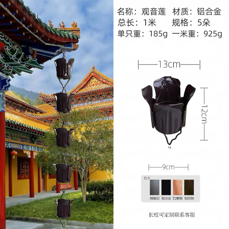 guanyin lotus rain chain aluminum alloy dark brown one meter 5 flowers