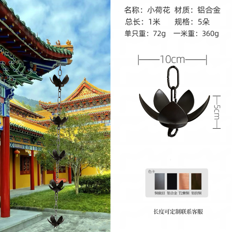 new lotus rain chain aluminum alloy dark brown one meter 5 flowers