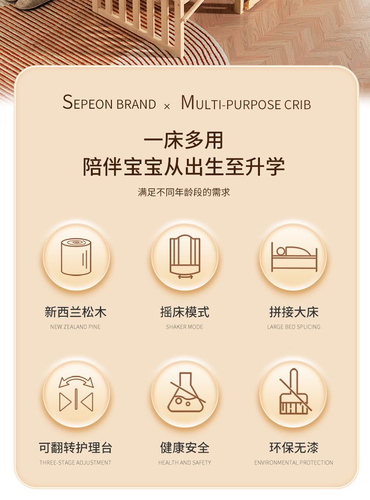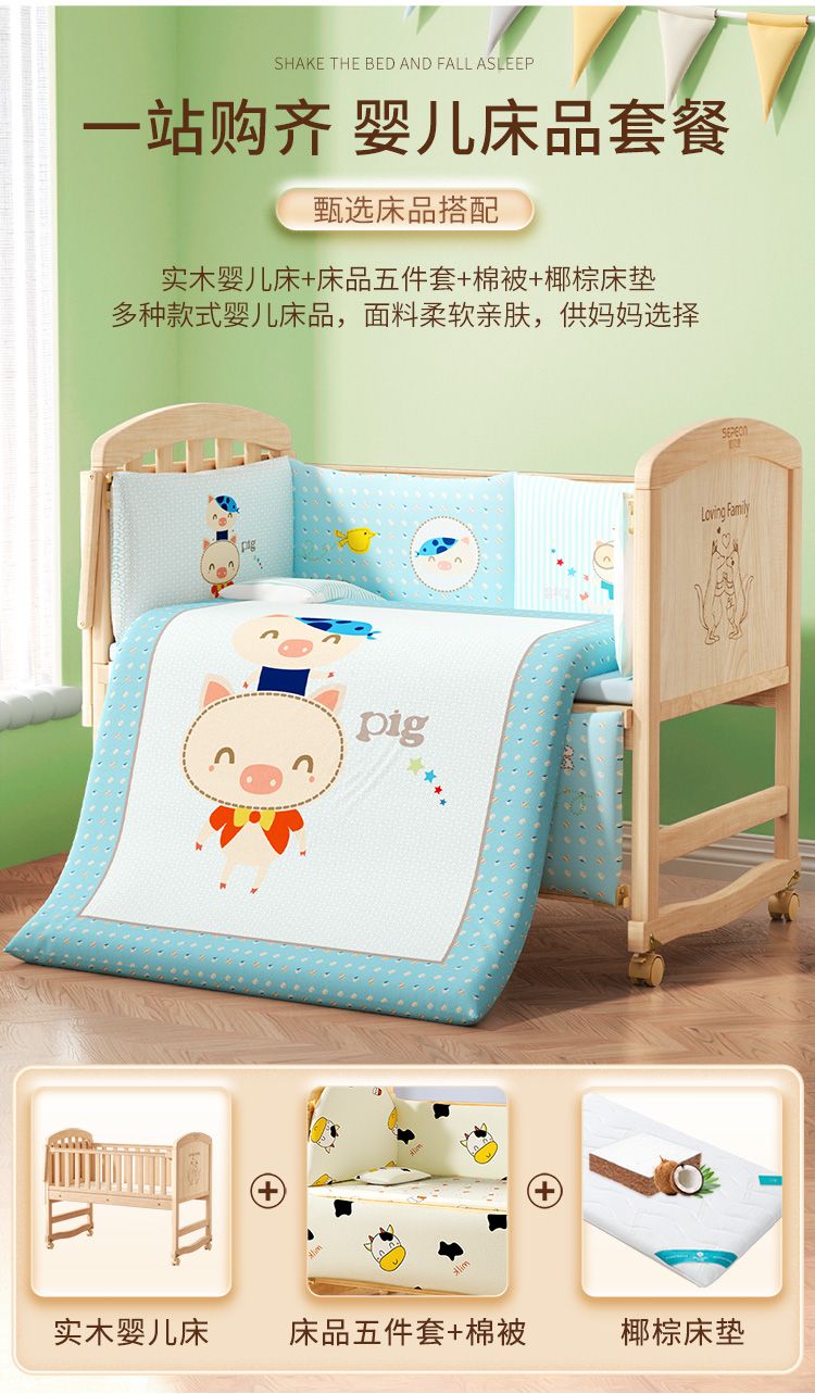 | big bed + mosquito net + upgraded color five-piece set + cocoanut matting plus baby caring table | ¥901.64 | 999999 piece available |