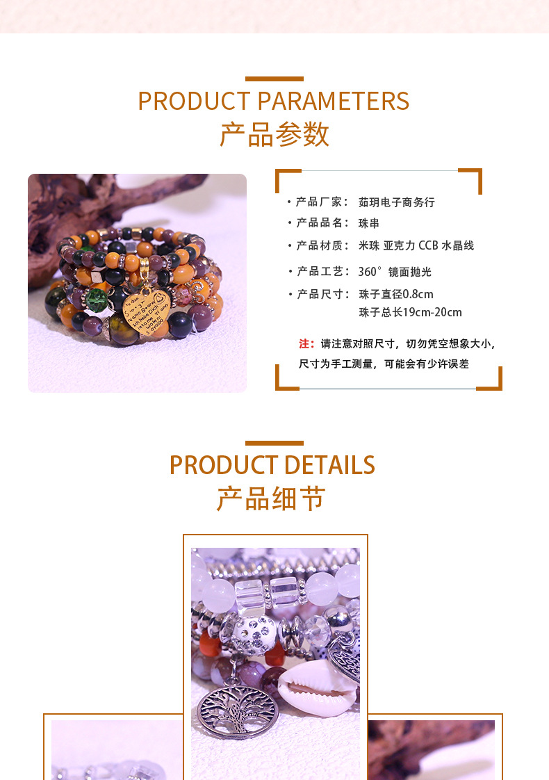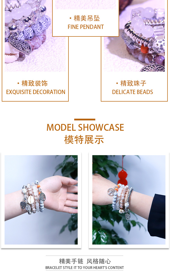 cross-border hot sale multi-layer bracelet european and american fashion mixed color peach heart bracelet string beads beaded stretch bracelet manufacturers wholesale