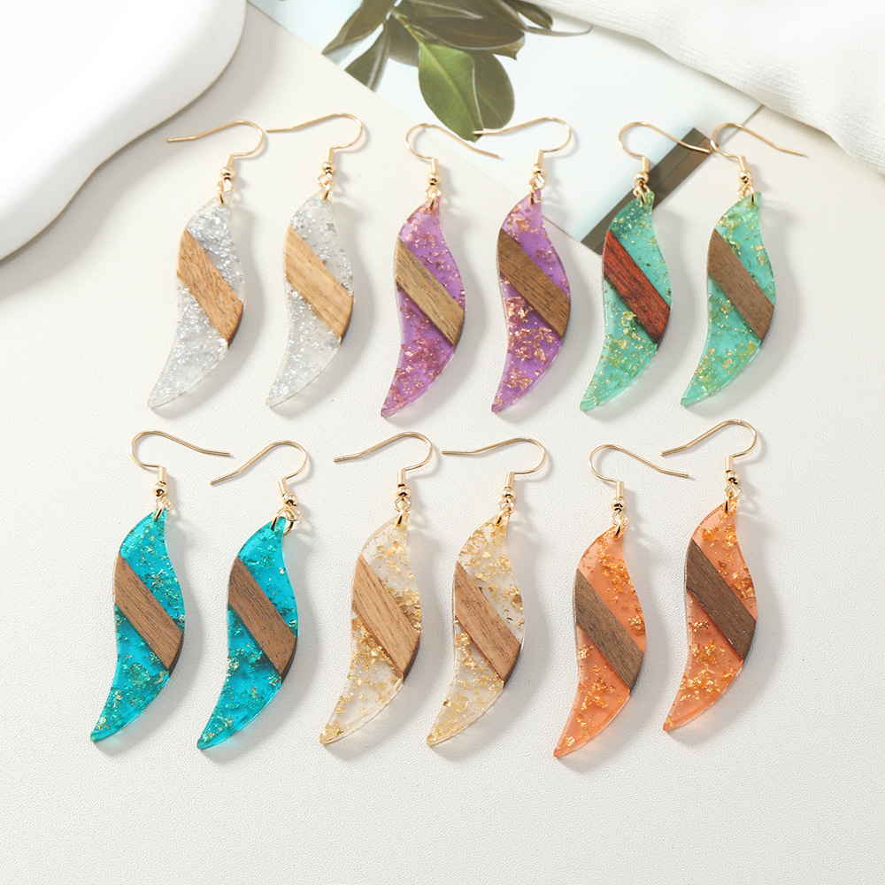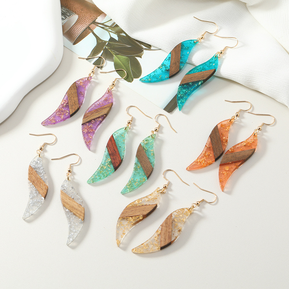 european and american amazon cross-border new arrival geometric leaf acrylic stitching wood earrings fashion minimalism earrings wholesale