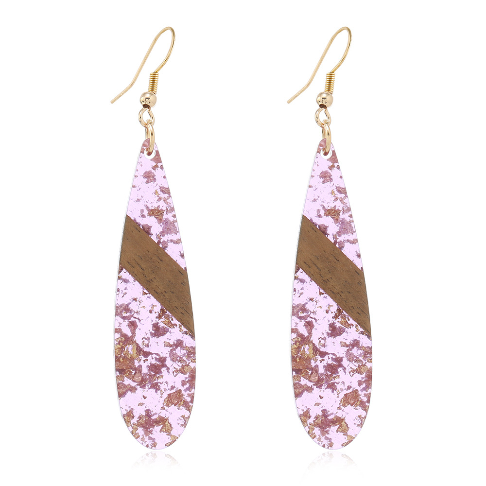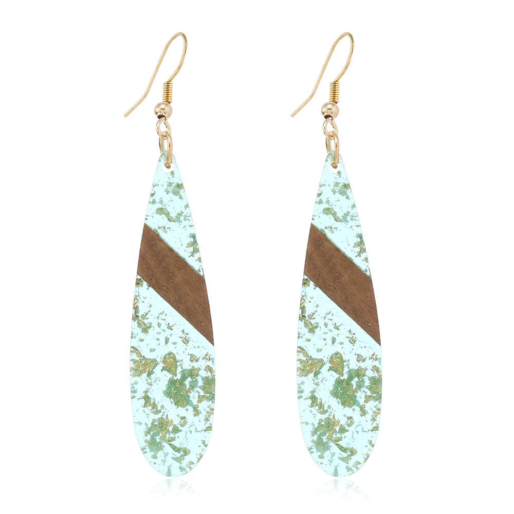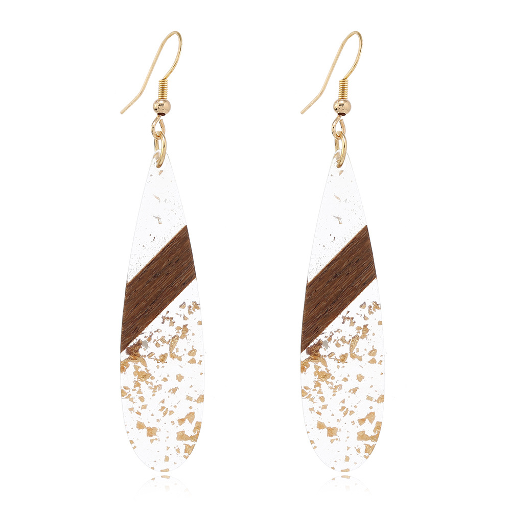 amazon hot selling retro fashion stitching wooden gold foil ear hook simple personality long water drop earrings women wholesale