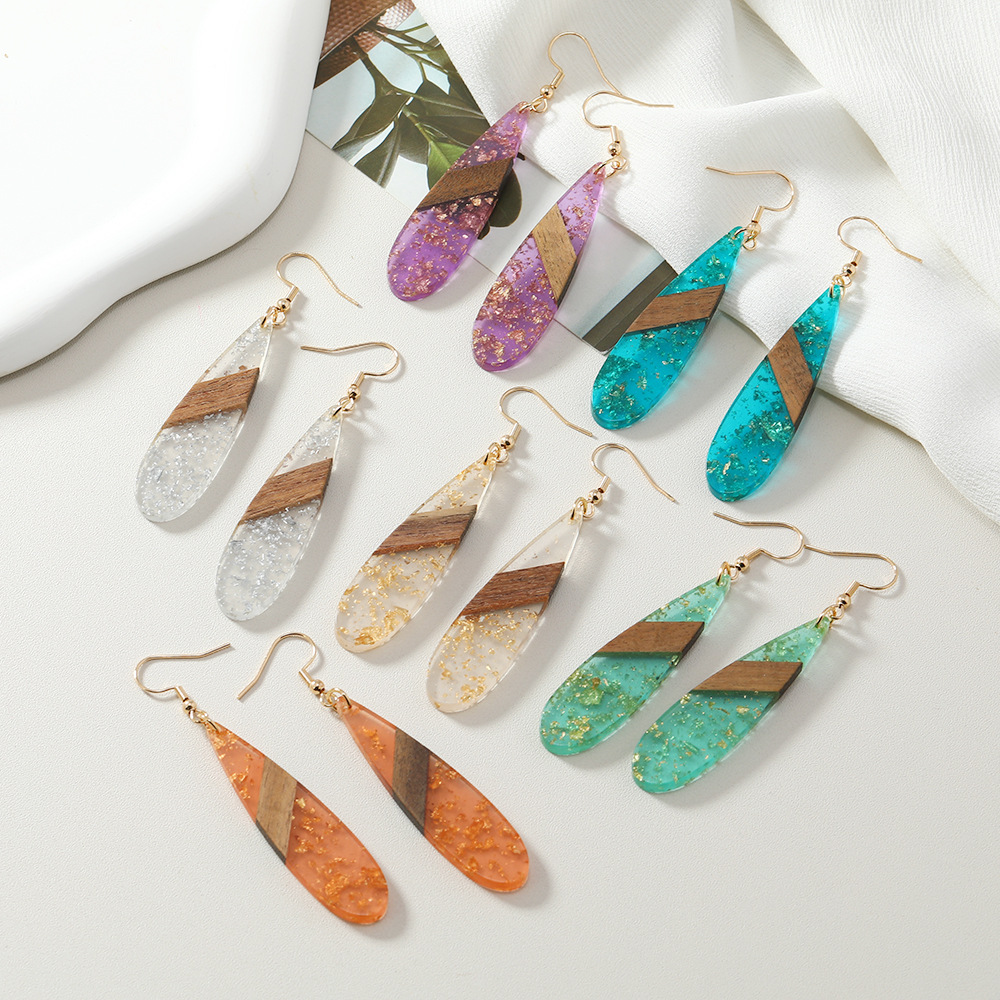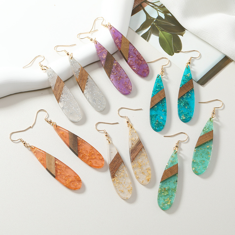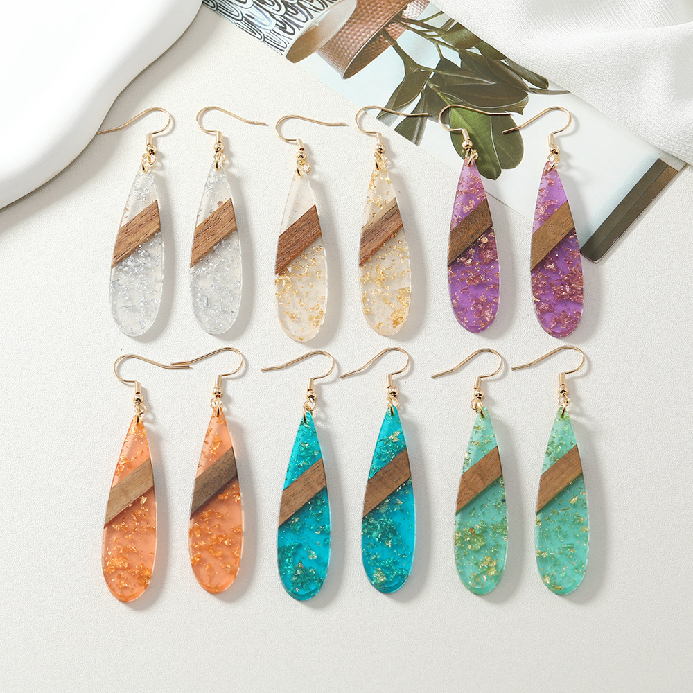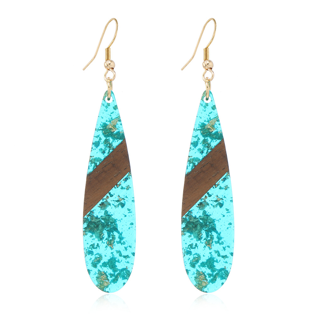 amazon hot selling retro fashion stitching wooden gold foil ear hook simple personality long water drop earrings women wholesale