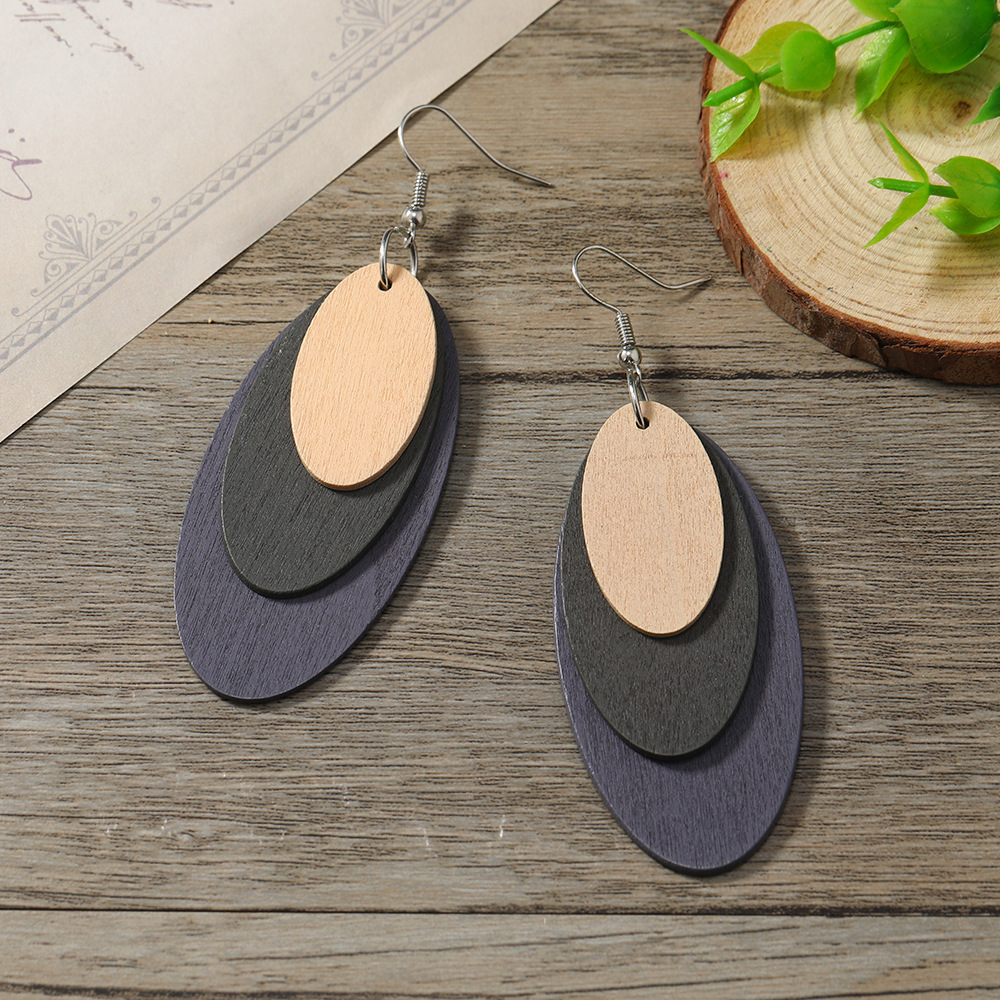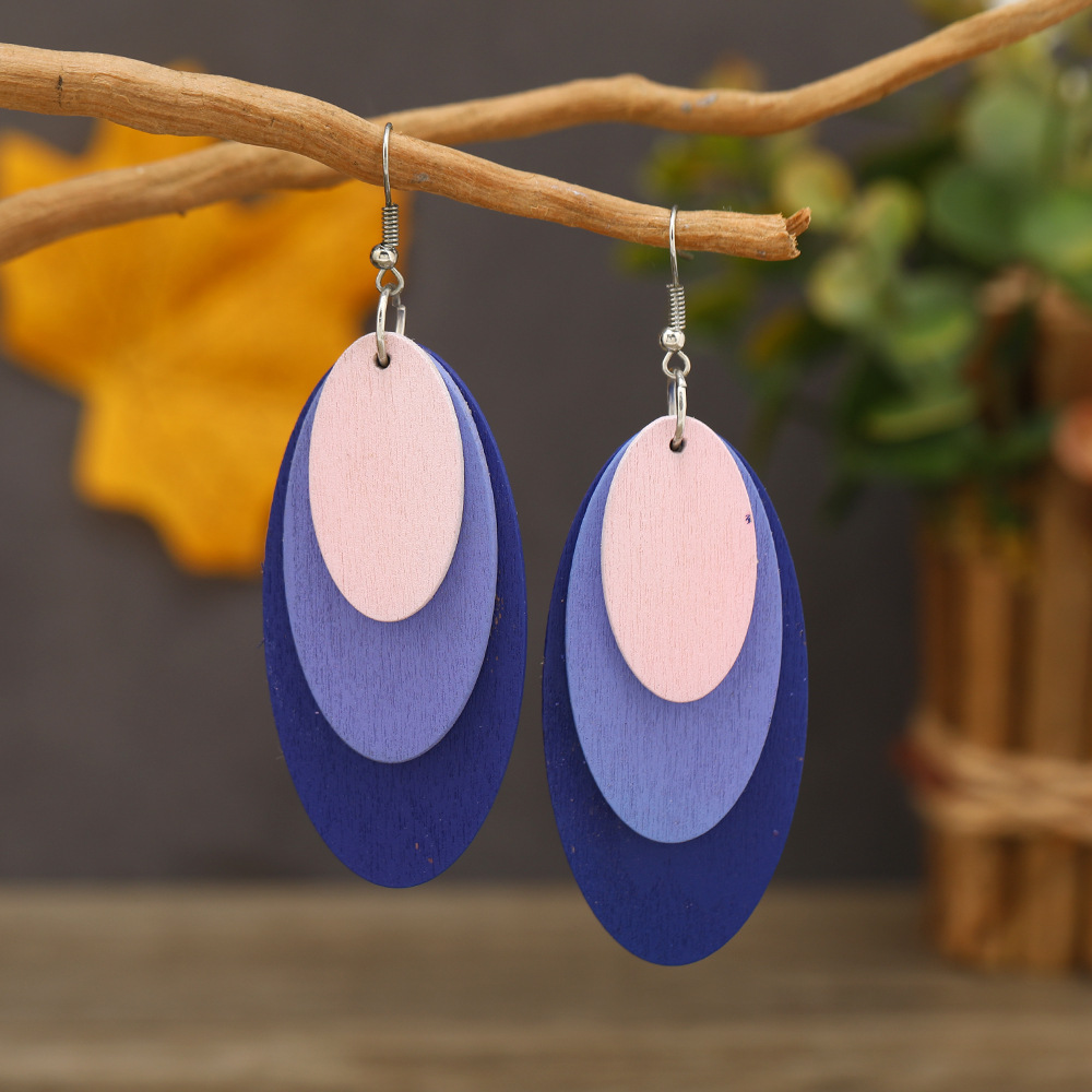 oval color three-layer long tassel special european and american high profile retro earrings amazon independent station hot earrings