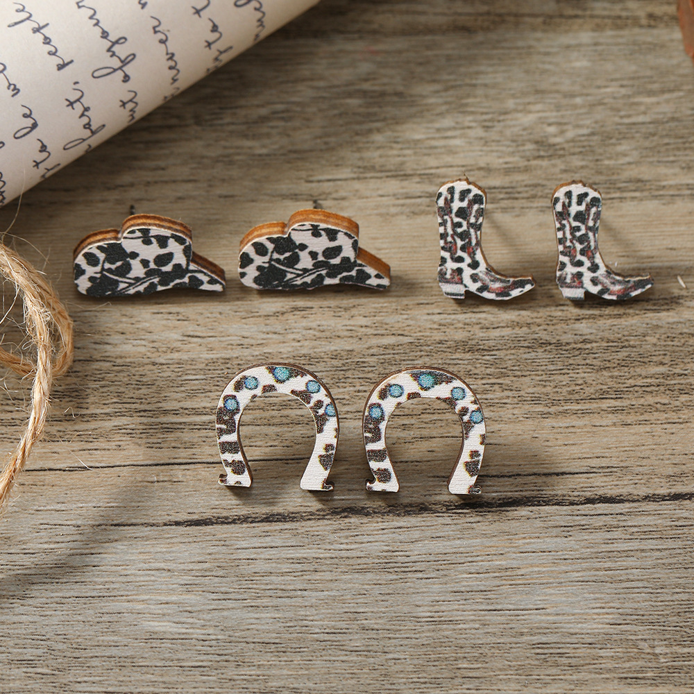 amazon hot wooden suit ear studs unique creative cartoon spot denim earrings european and american high-grade earrings