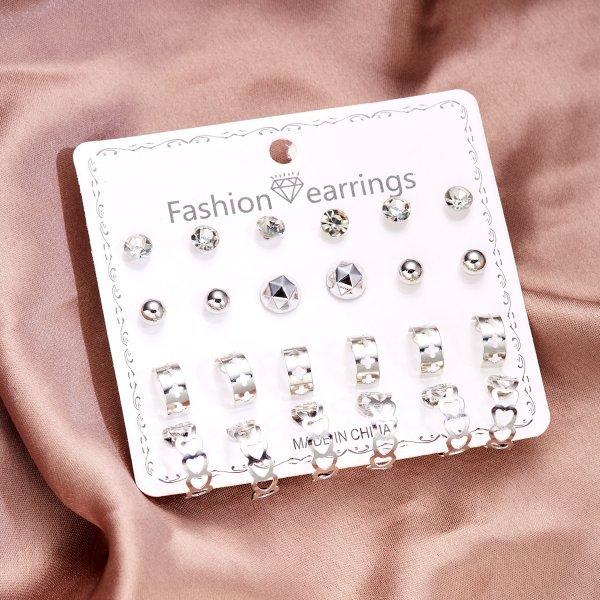 europe and america cross border new paper card alloy zircon ear studs niche versatile 12 pairs combination card earrings suit women