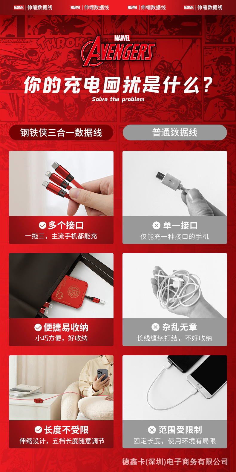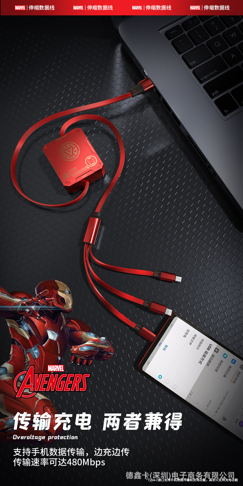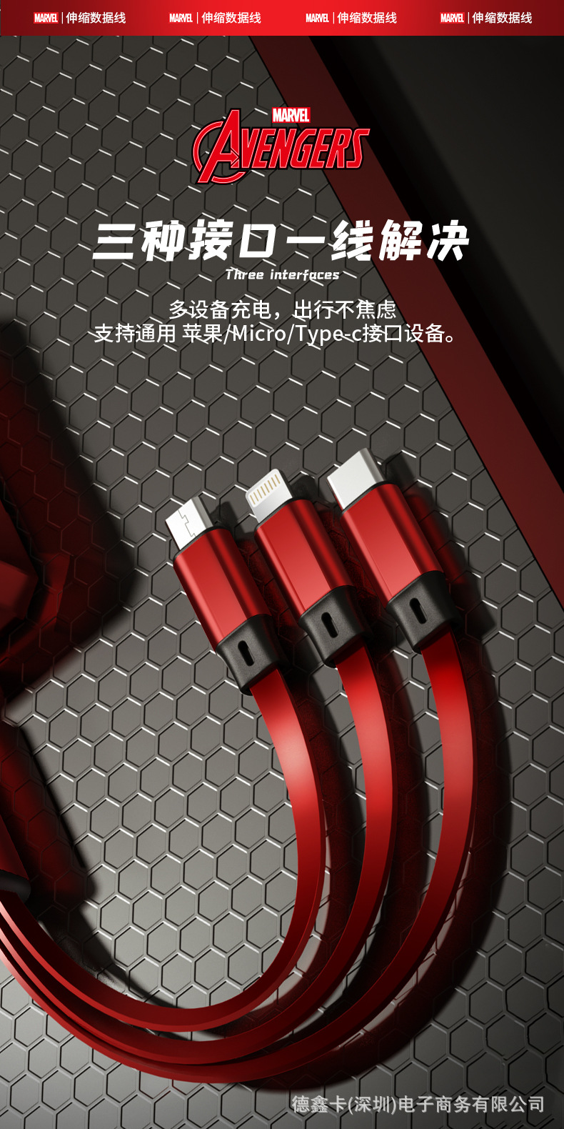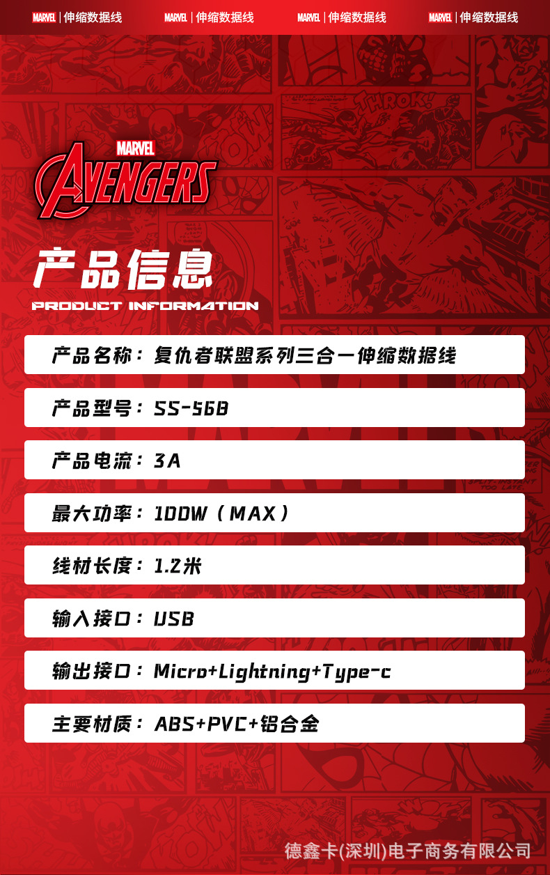 marvel data cable one drag three red