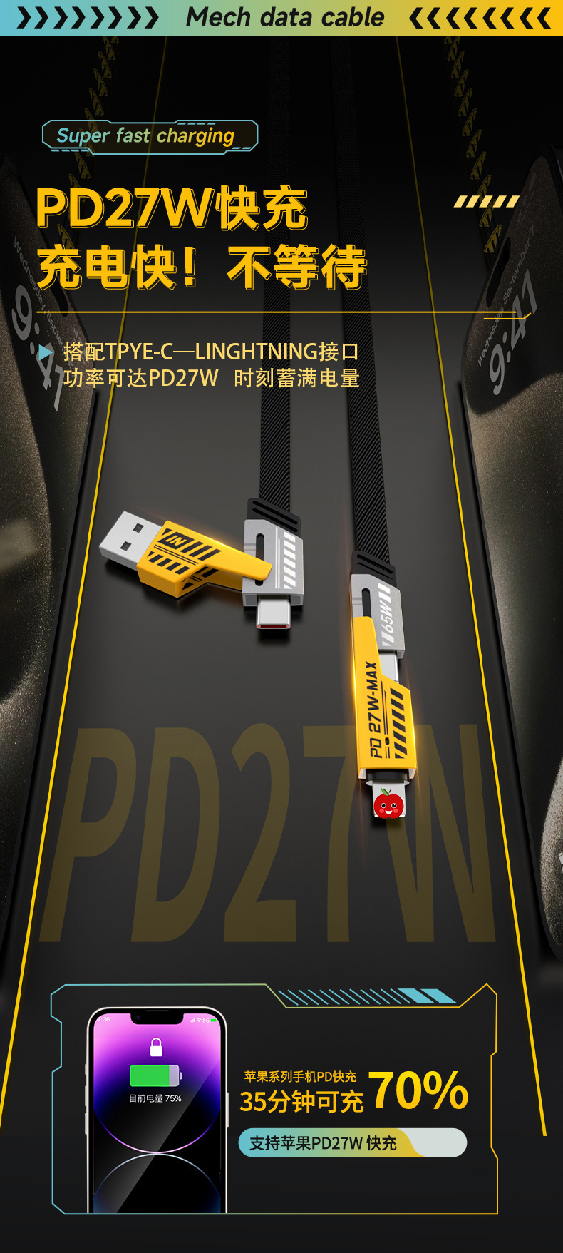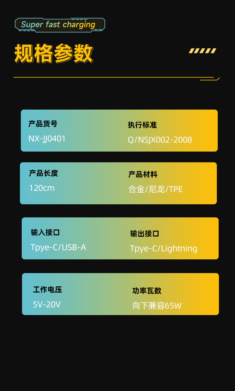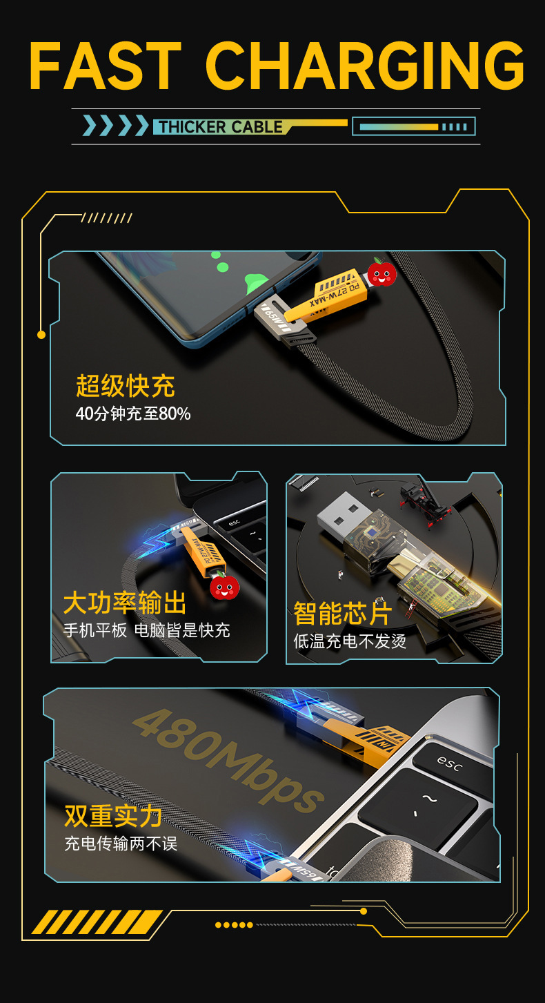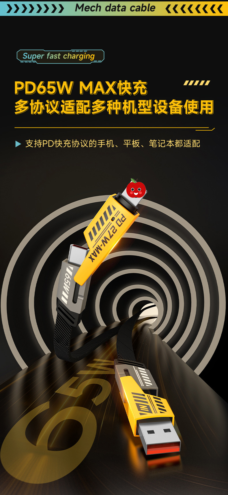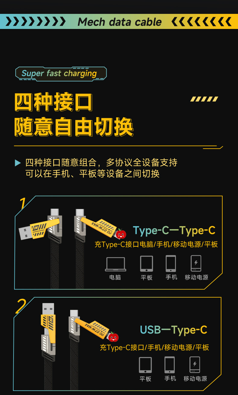 65w four-in-one mech data cable 1 m