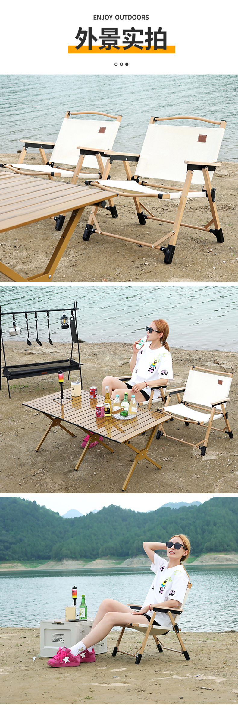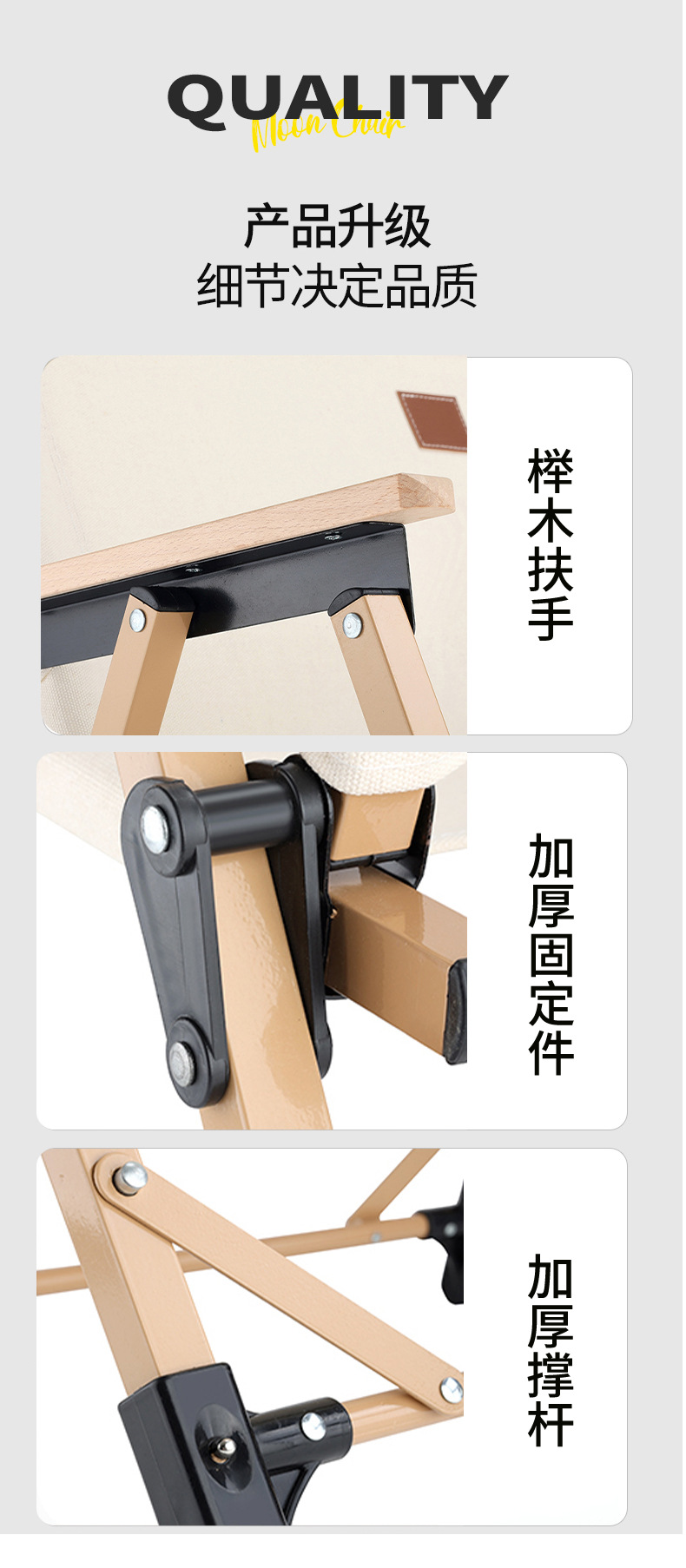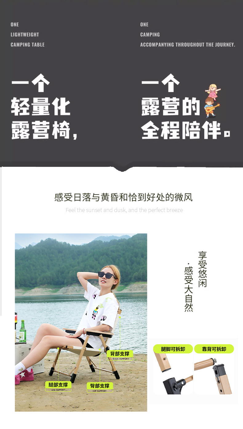 medium khaki (portable reinforced) solid wood armrest
