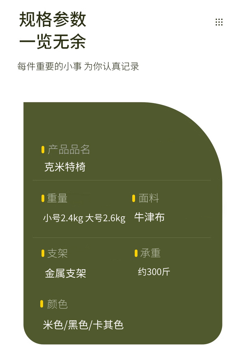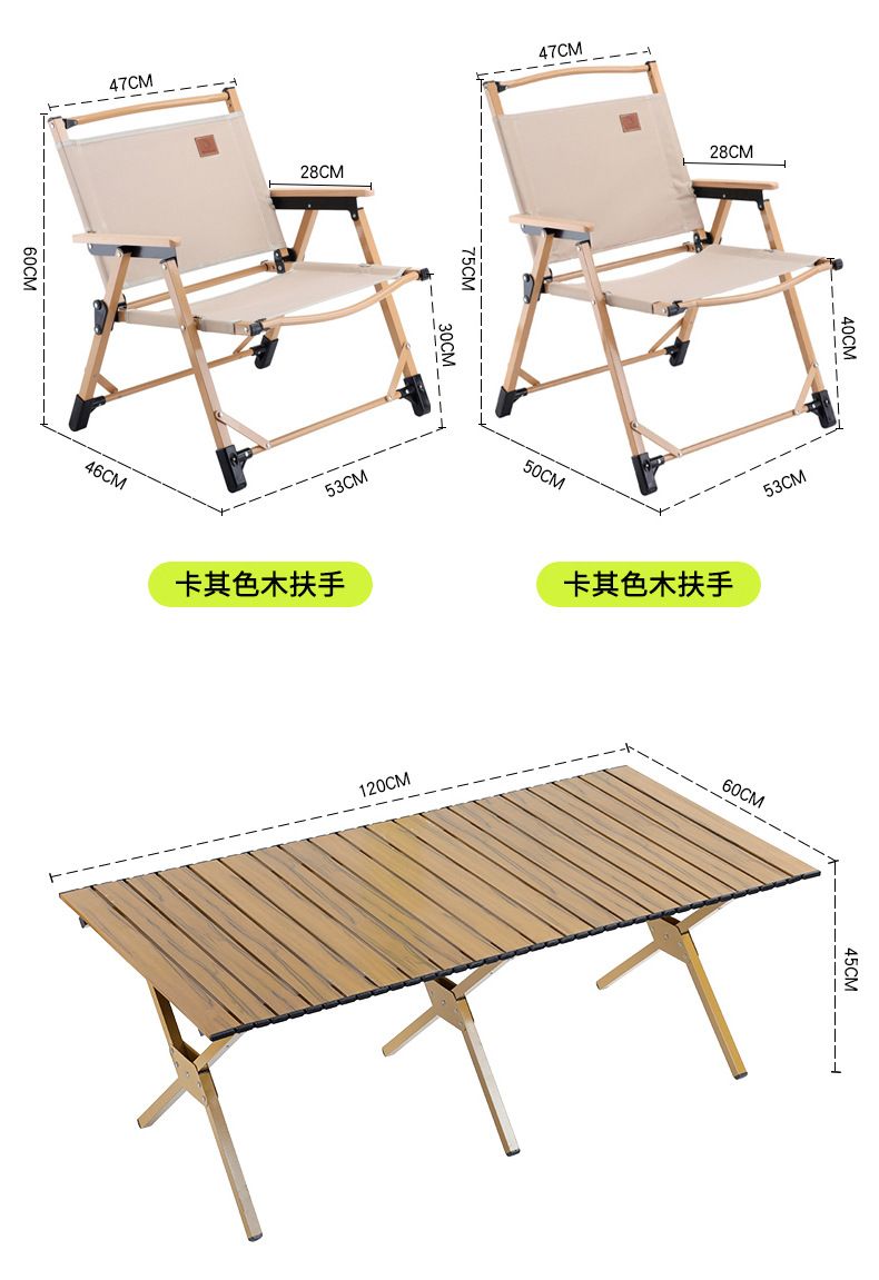 large khaki (portable reinforced) solid wood armrest