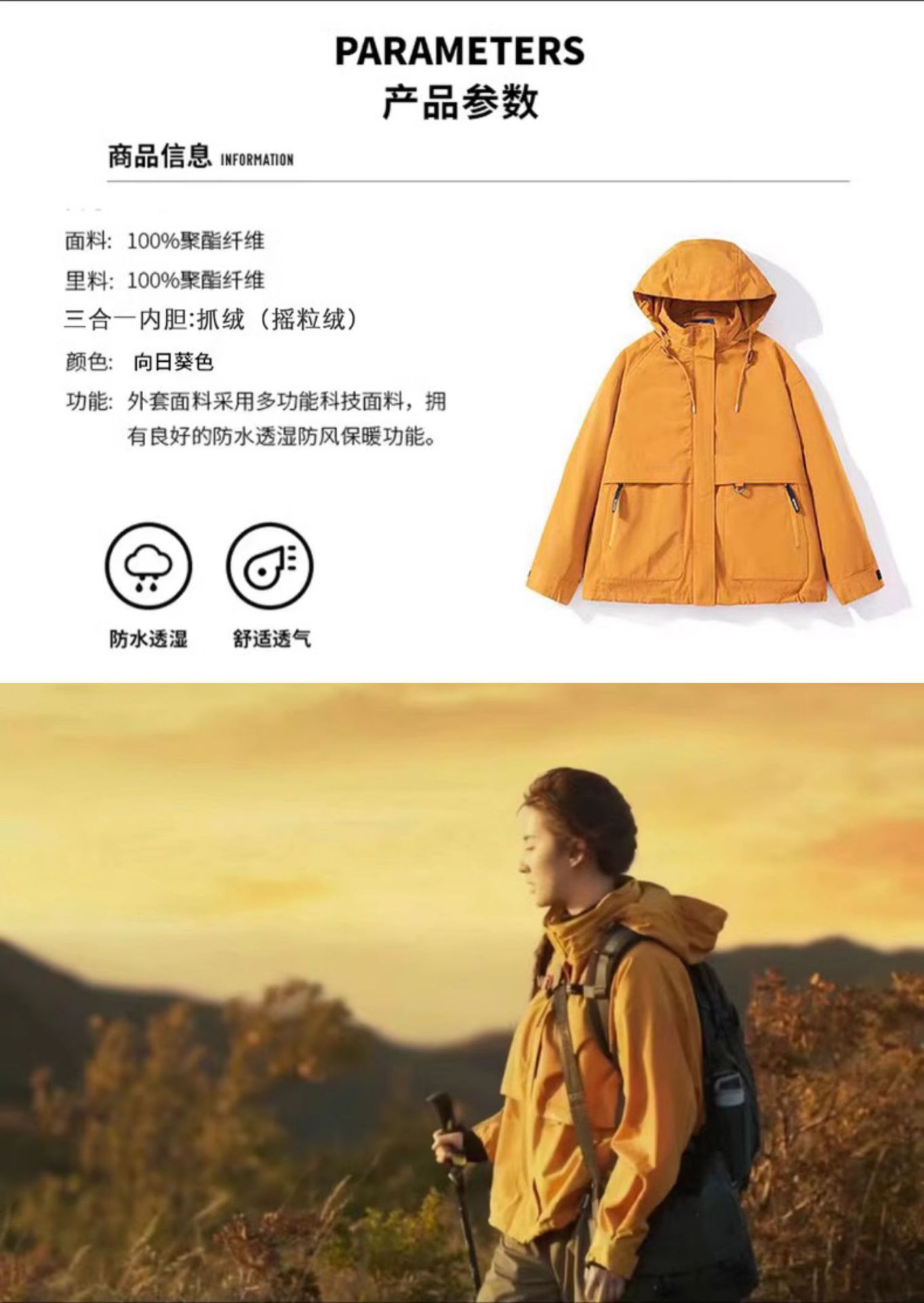liu yifei huang yimei same style spring, autumn and winter mountaineering jacket lightweight three-in-one windproof outdoor women's gore-tex jacket