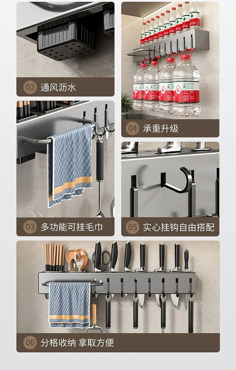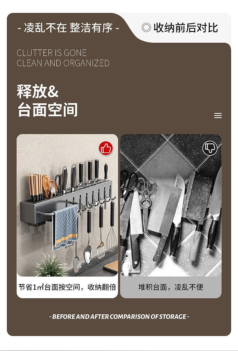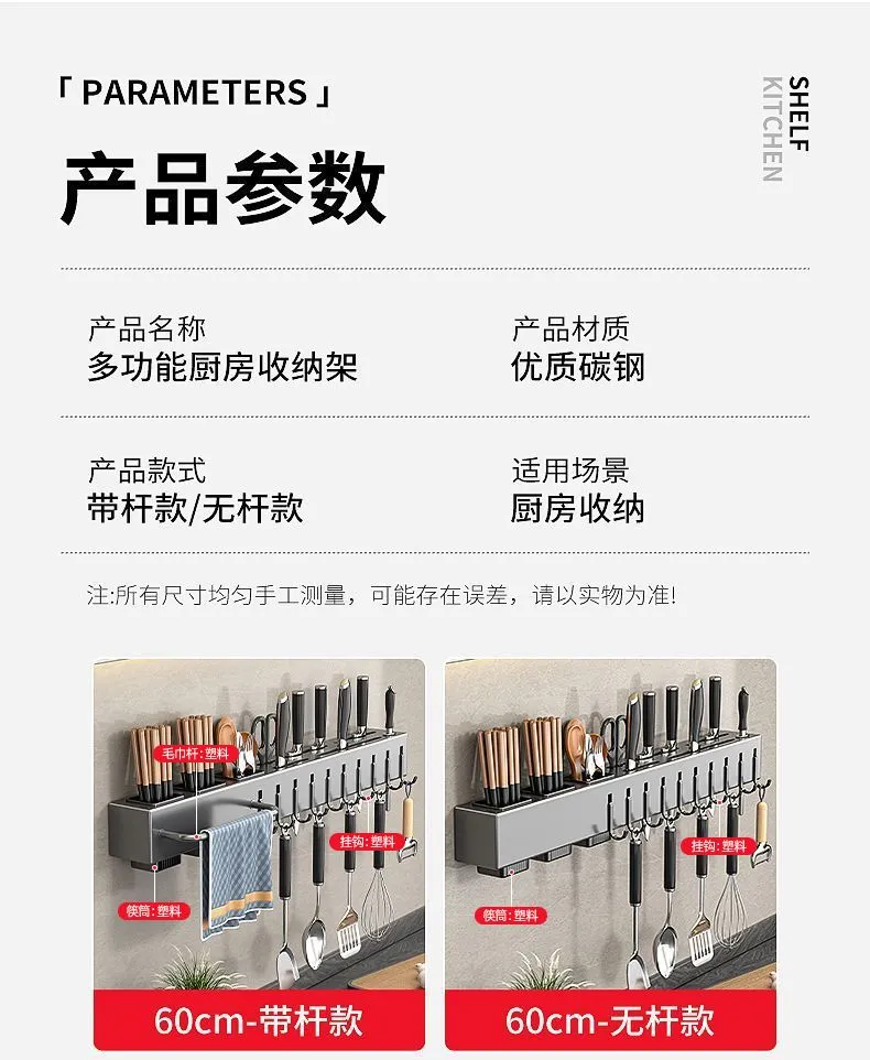 | 50cm [knife rest +2 chopstick canister +8 hooks + hanging rod]] | CN¥ 31.29 | 999999 piece available |