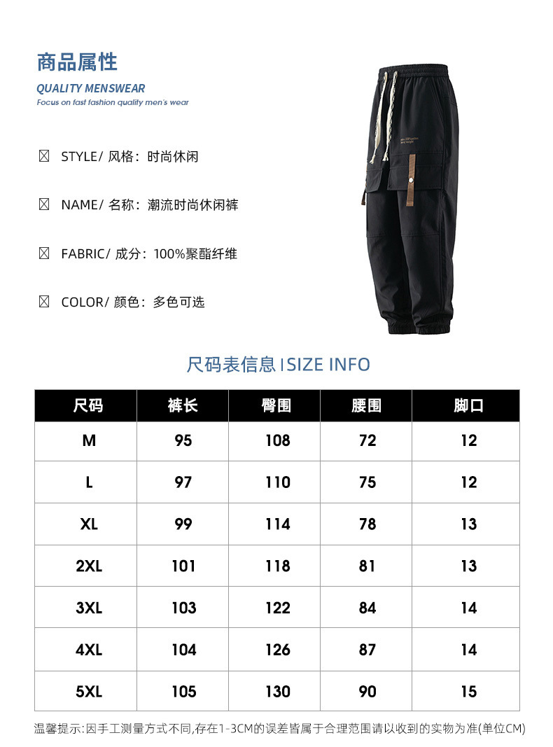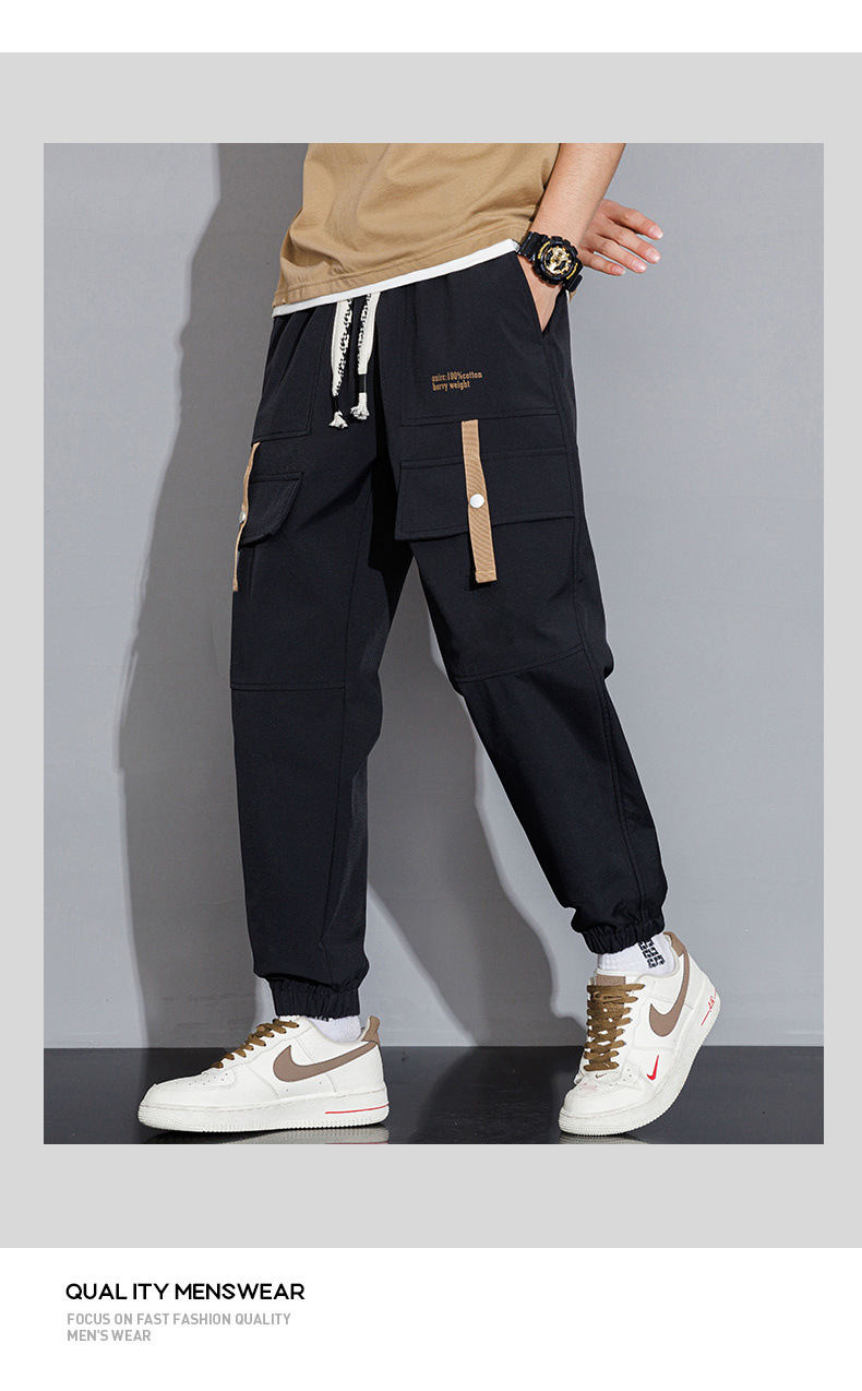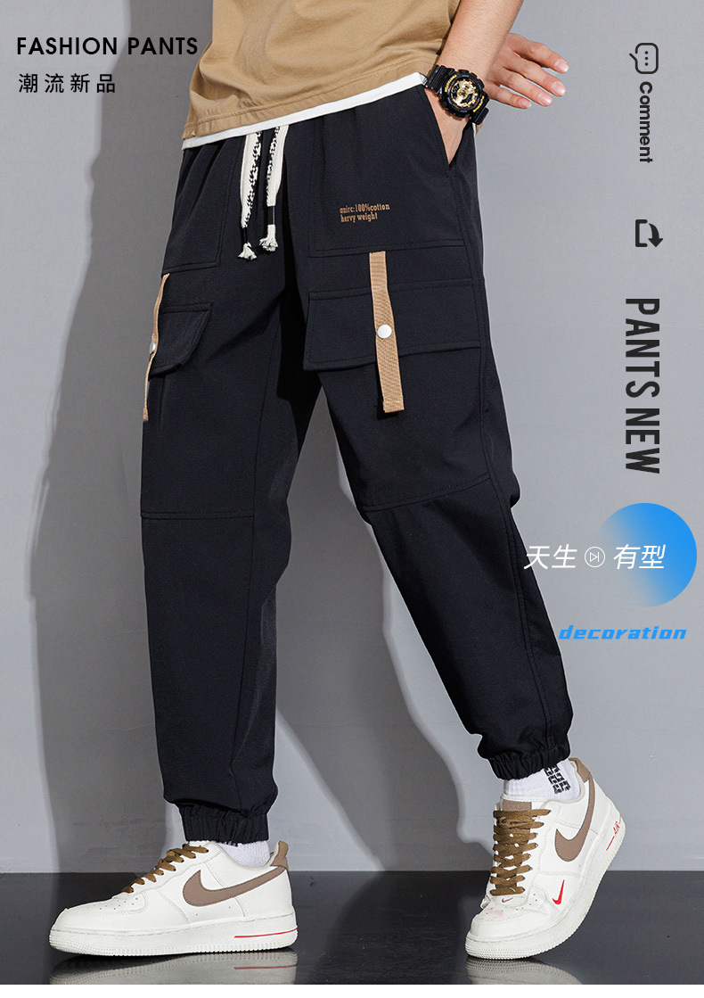 men's casual pants spring and autumn 2024 new fashion brand exercise ankle-tied high school student students' work clothes pants men's spring