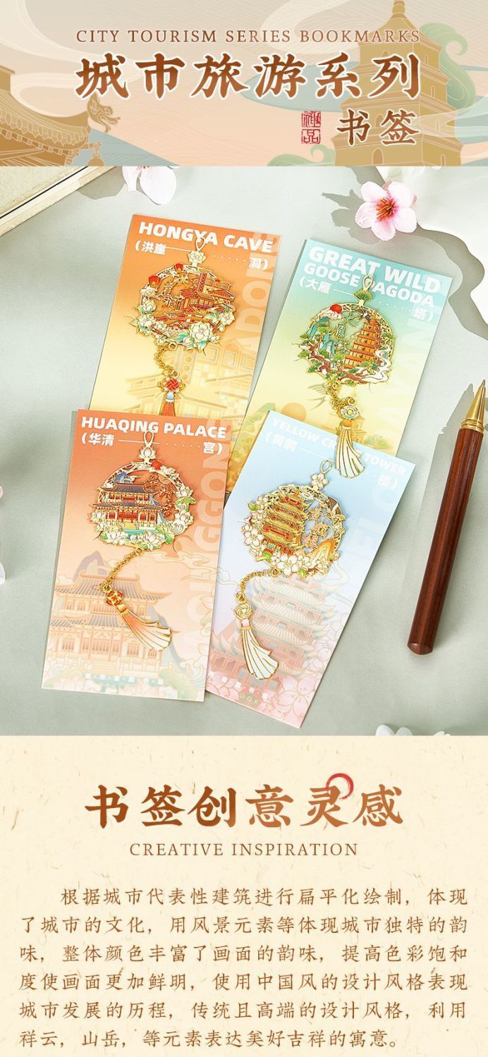 city tourism souvenir bookmark high-end classical chinese style metal bookmark cultural and creative gifts graduation for students