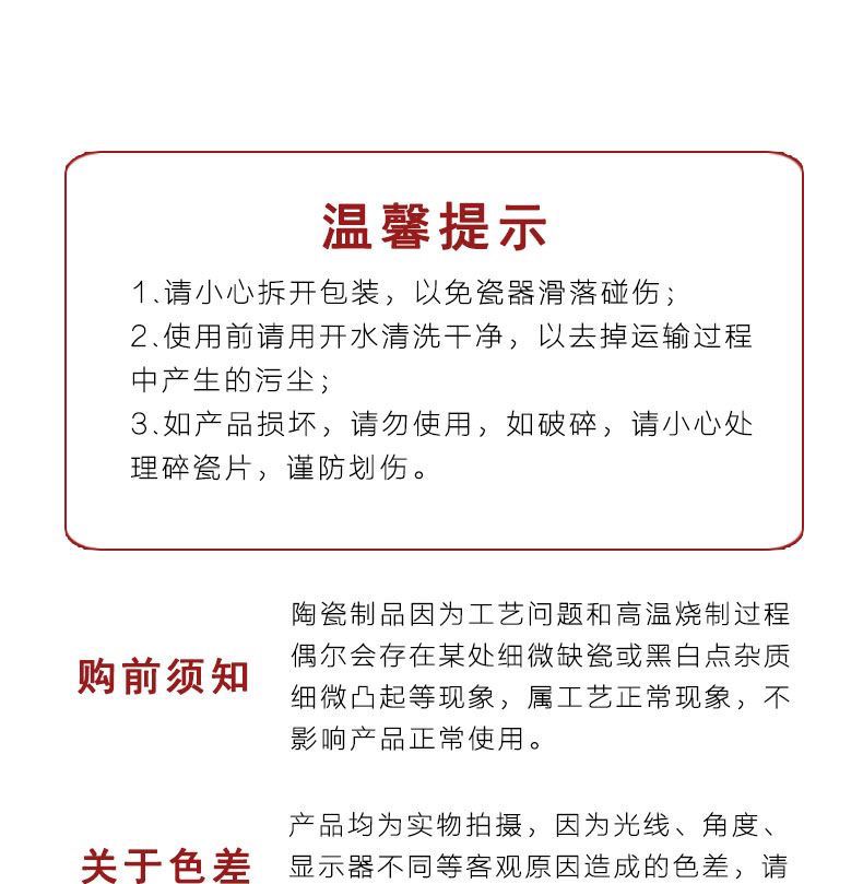 | fu character 7-inch dish (6 pieces) | CN¥ 27.34 | 999999 piece available |