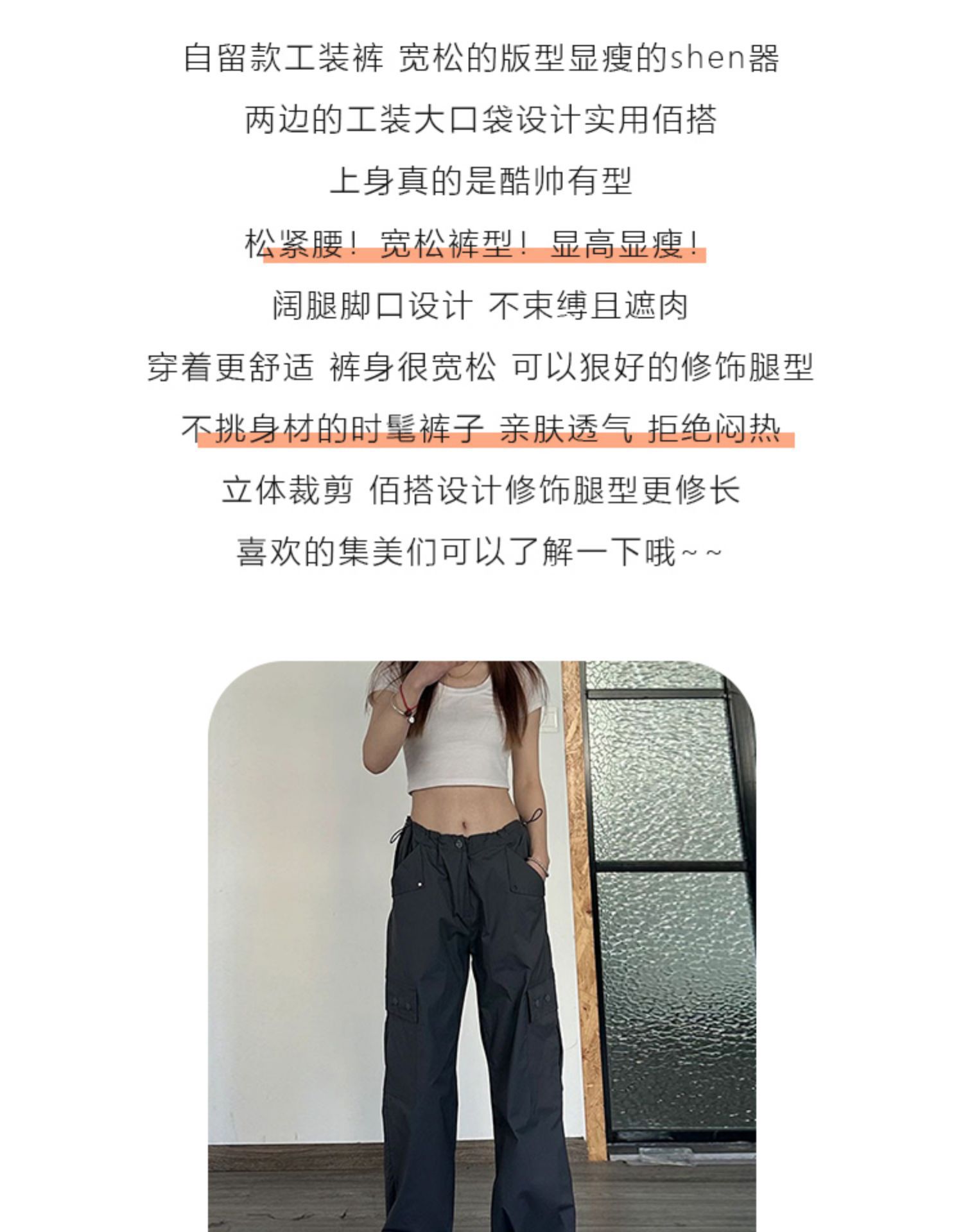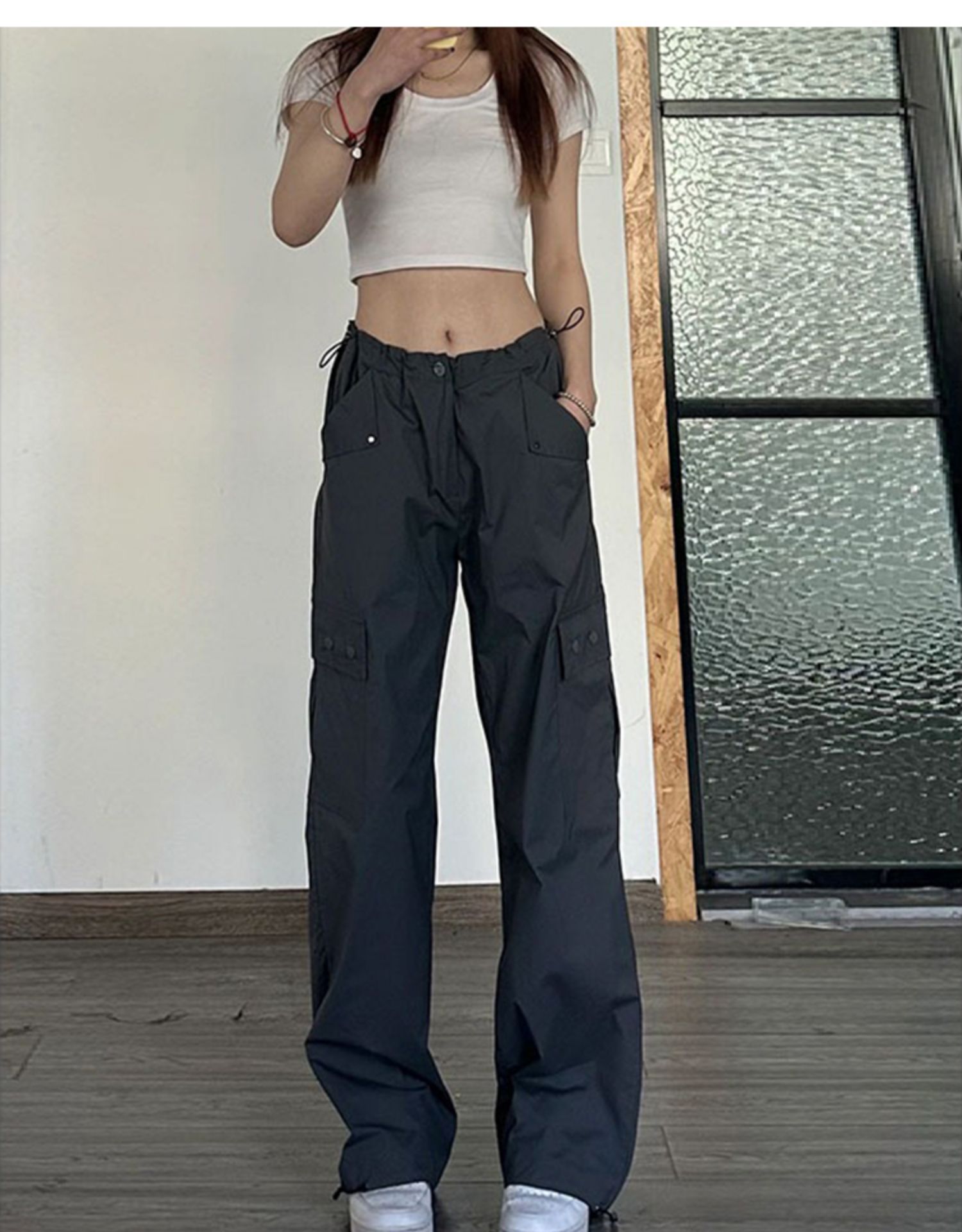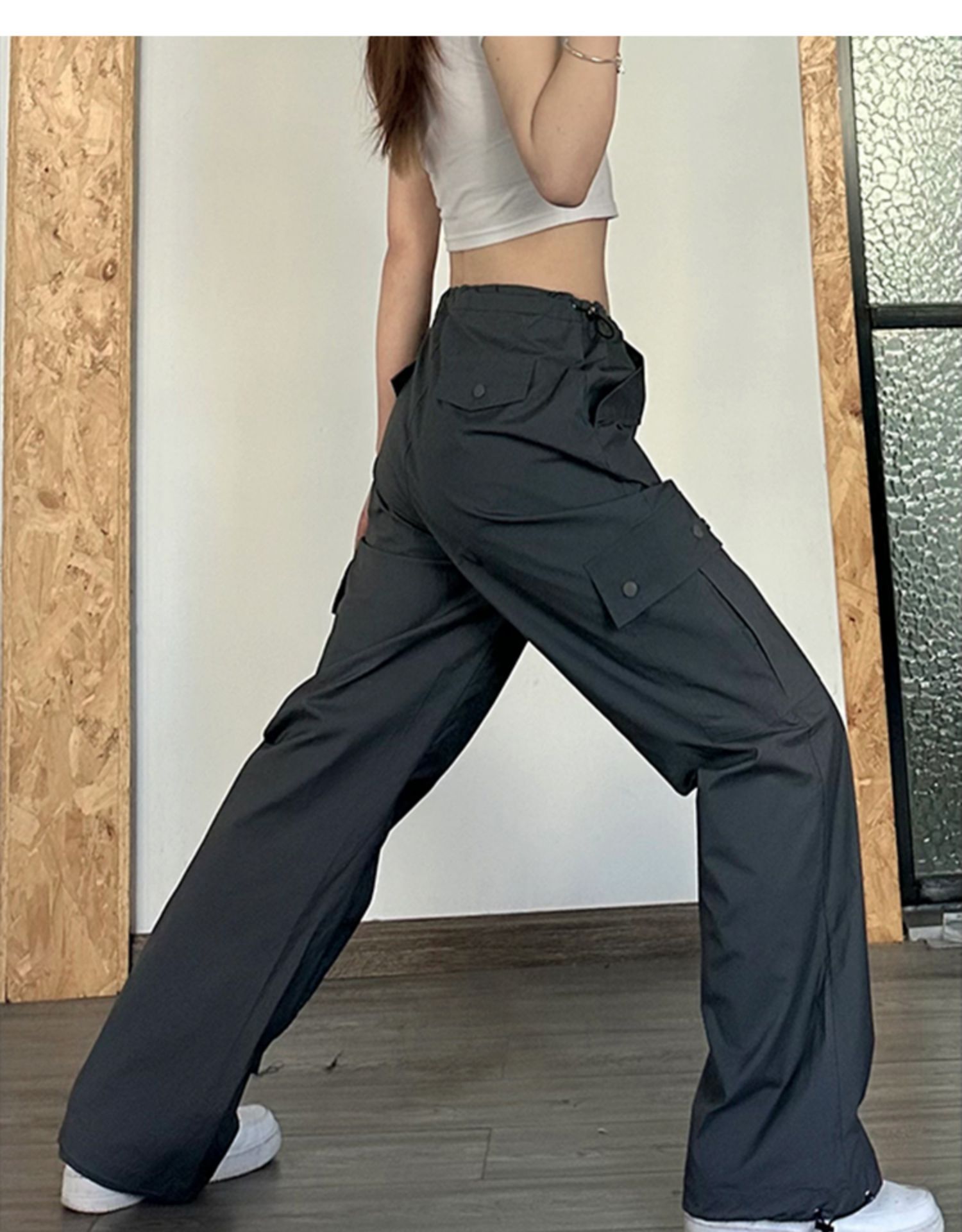 american dark gray straight cargo pants women's summer thin high waist plus size plump girls loose slimming and wide leg casual pants