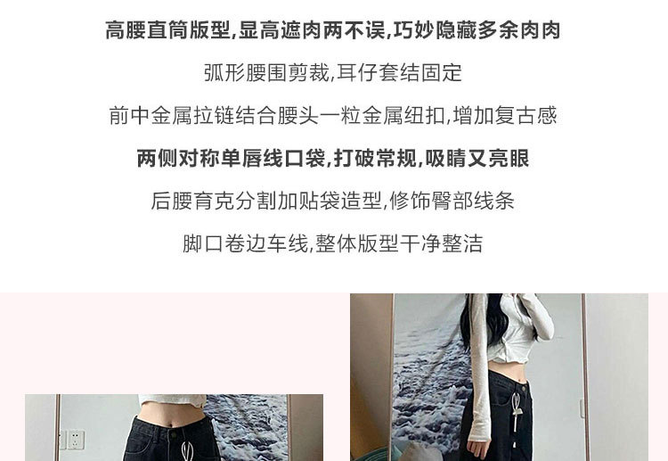 black narrow jeans women's spring and autumn plus size plump girls high waist loose and slimming pear shapes wide leg straight pants
