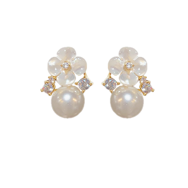 flower pearl stud earrings (thick gold plating)