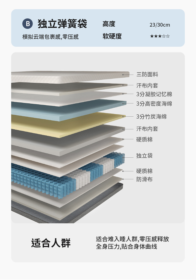 | cloud mattress · fully upgraded [zero-pressure sleep experience · gel memory foam + independent lumbar support springs · 23cm thickness] | CN¥ 2339.1 |