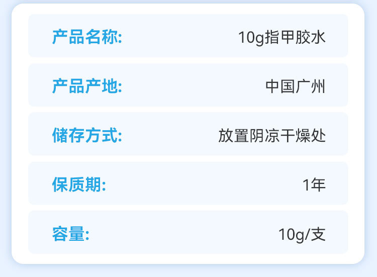 10g transparent nail tip glue (blue label long hat)