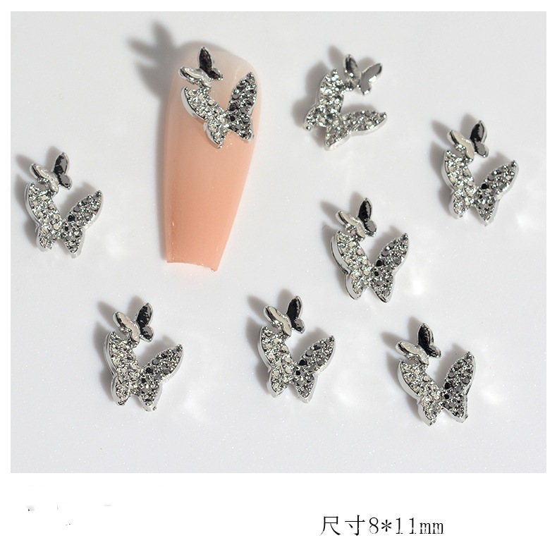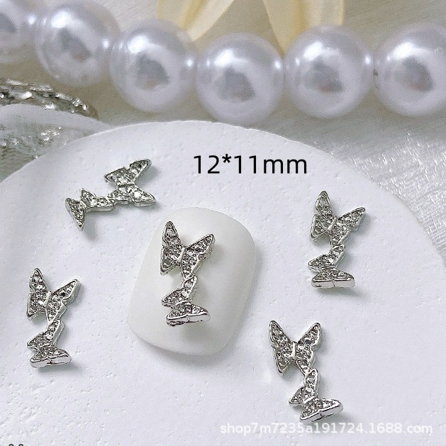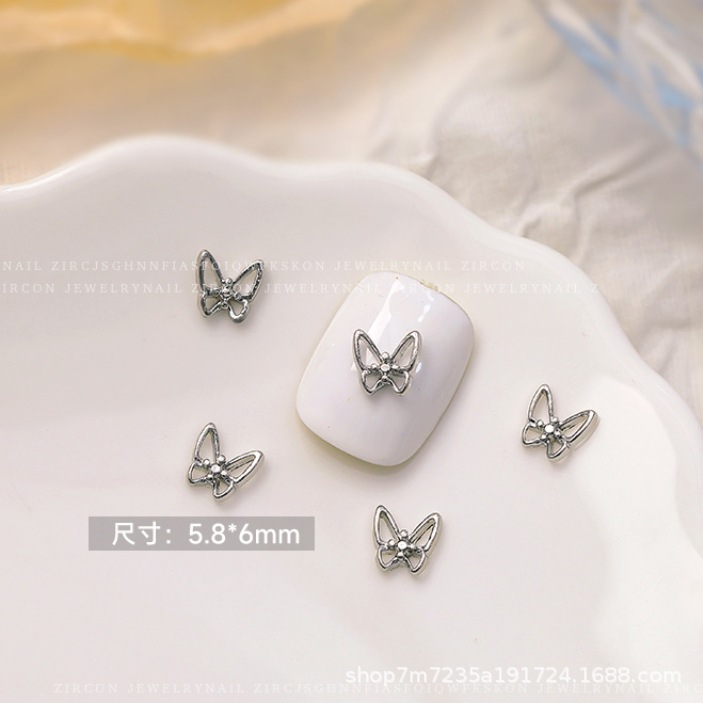 34 9.9mm diamond wings hollow butterfly silver