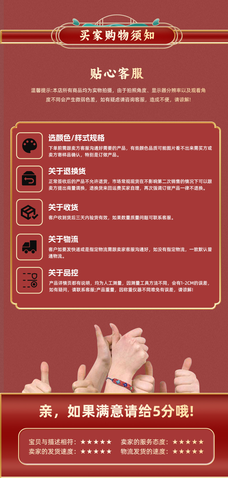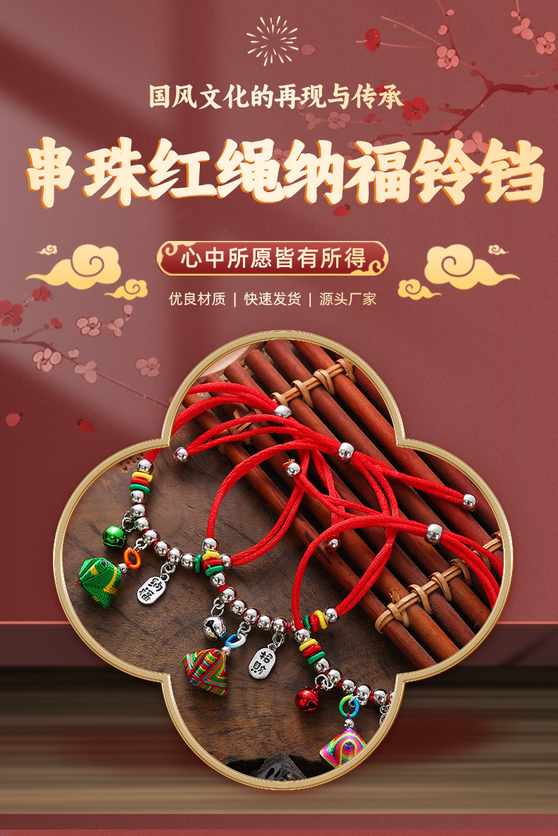 beaded tag bell hanging no. 5 colorful red rope bracelet