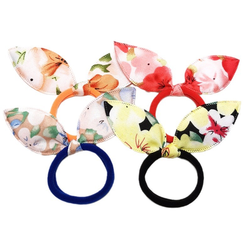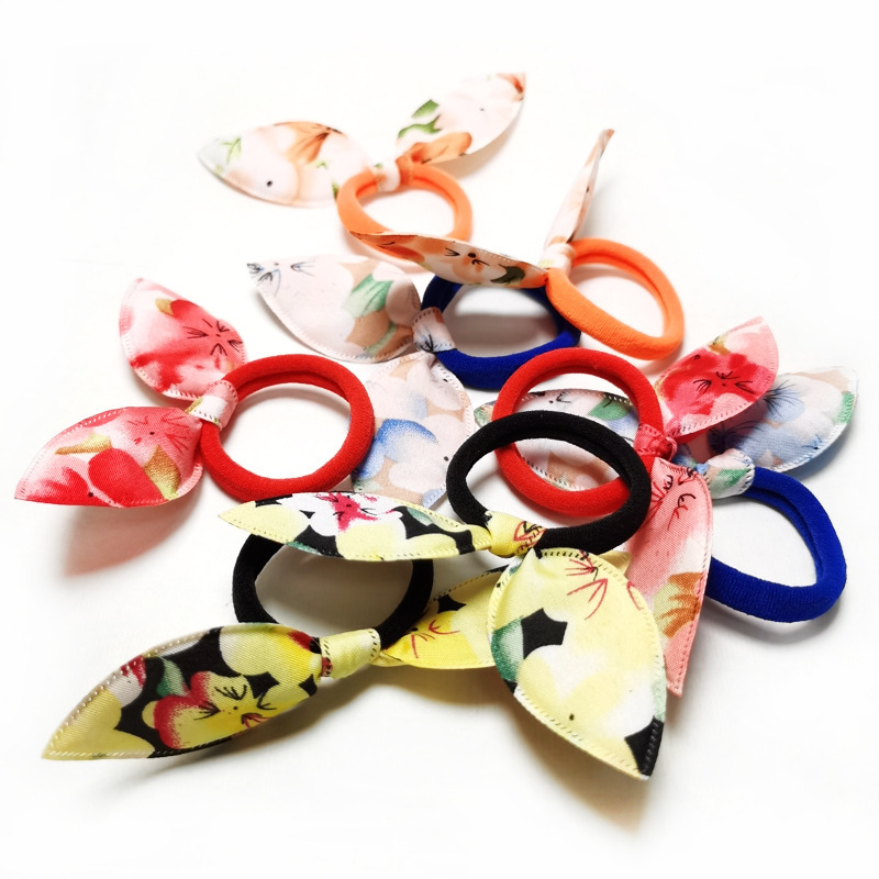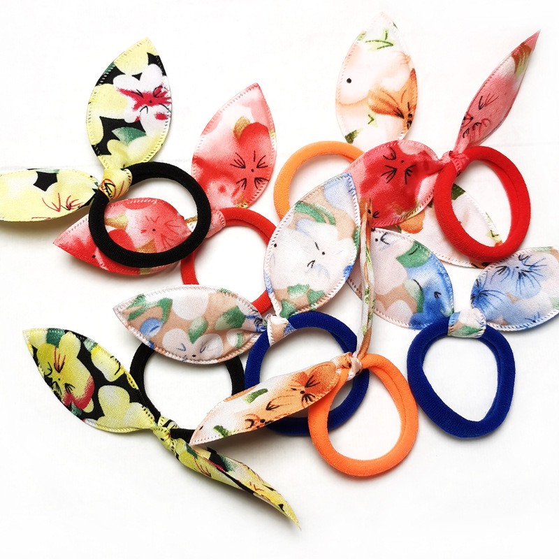 floral rabbit ears towel hair ring does not hurt hair small size towel ring children's hair accessories tie-up hair head rope factory wholesale