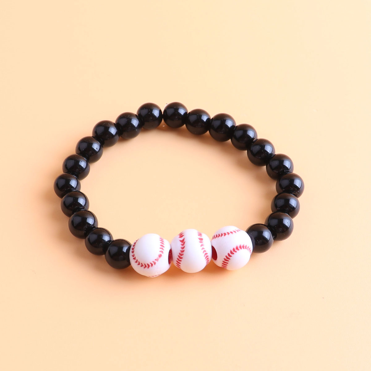 8mm black beads + 12mm white baseball