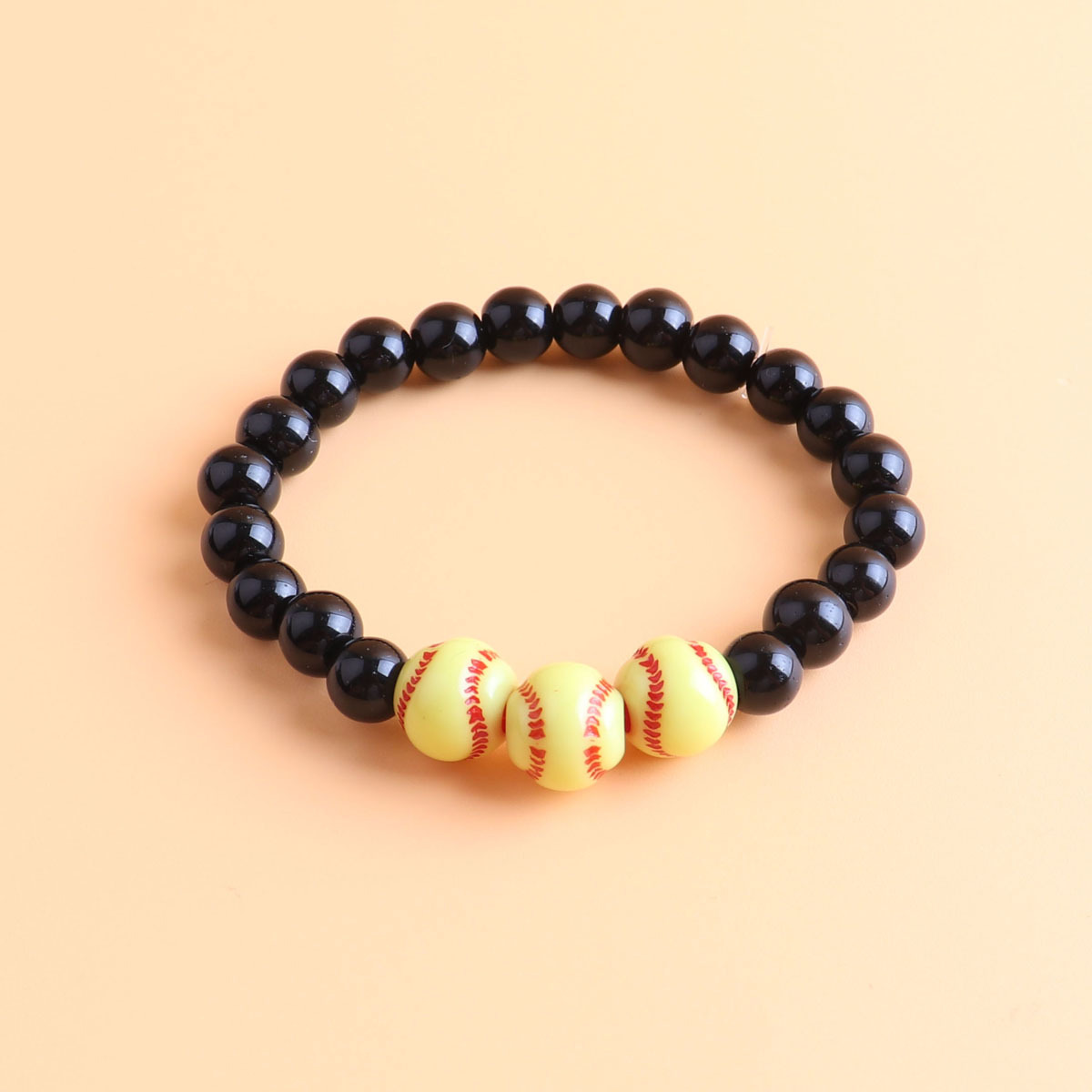 8mm black beads + 12mm yellow red softball
